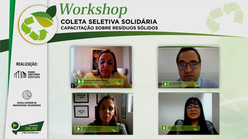 Com a iniciativa de iniciar o processo de sensibilização, educação ambiental e capacitação de magistrados e servidores do Judiciário Tocantinense para a Coleta Seletiva Solidária, o Tribunal de Justiça do Estado do Tocantins, por meio da Escola Superior da Magistratura Tocantinense (ESMAT), iniciou, nesta segunda-feira (15), de maneira virtual, o Workshop Coleta Seletiva Solidária – Capacitação de Resíduos Sólidos – Turma III. A programação termina nessa terça-feira (16).