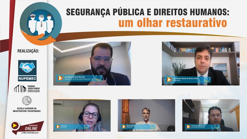O primeiro painel do curso Segurança Pública e Direitos Humanos: Um Olhar Restaurativo abordou os temas: Justiça Restaurativa: origem, princípios, valores e suas metodologias; Círculos de construção de paz e A utilização e a prática da comunicação não violenta na perspectiva da atuação policial. A programação ocorre semanalmente até o mês de maio.