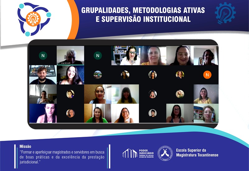 Teve início, nesta segunda-feira (3), o curso Grupalidades, Metodologias Ativas e Supervisão Institucional, na modalidade à Distância. Realizado pela Escola Superior da Magistratura Tocantinense, é destinado a servidores efetivos ou comissionados, estagiários e a servidores de outros órgãos à disposição do Poder Judiciário Tocantinense, credenciados das áreas de Serviço Social, Psicologia e Pedagogia que atuam na operacionalização dos programas em desenvolvimento vinculados ao Grupo Gestor de Equipes Multidisciplinares (GGEM). As aulas ocorrem na modalidade Ensino à Distância e se estendem até o dia 30 de setembro.