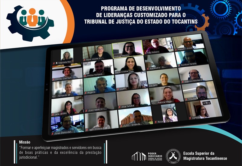 Dividido em seis Módulos, as aulas se estendem até 28 de junho de 2021, via Plataforma Virtual da Esmat, o programa tem como público-alvo magistrados e servidores do Poder Judiciário Tocantinense e como objetivo principal desenvolver um programa de desenvolvimento de lideranças para este Poder, contribuindo para o alcance das metas estabelecidas pela Instituição para o biênio 2021-2023.
