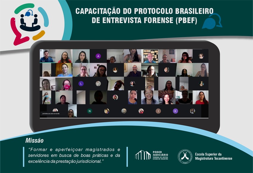 Com o objetivo de capacitar os profissionais para atuarem (compreensão, manejo e prática) em audiência de Depoimento Especial de Crianças e de Adolescentes, vítimas ou testemunhas de violência, nos processos judiciais, aplicando o Protocolo Brasileiro de Entrevista Forense (PBEF), a Escola Superior da Magistratura Tocantinense (ESMAT) deu início ao curso Capacitação do Protocolo Brasileiro de Entrevista Forense (PBEF), destinado a profissionais credenciados com atuação nas comarcas de Araguaína, Gurupi, Dianópolis, Porto Nacional, Miracema e Paraíso do Tocantins e aos responsáveis técnicos vinculados ao Grupo Gestor de Equipes Multidisciplinares (GGEM), encarregados por este Protocolo.