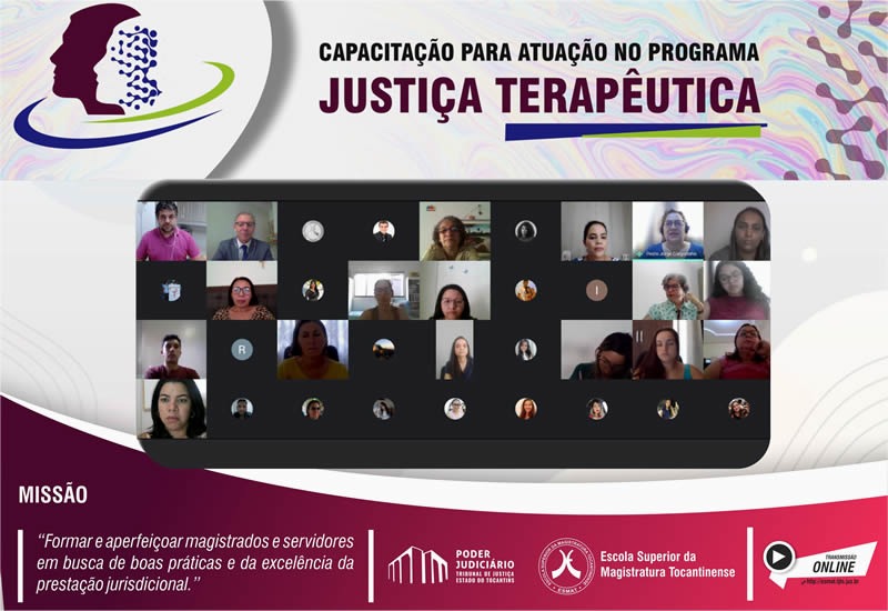 A capacitação tem por objetivo capacitar profissionais de diferentes setores e áreas do conhecimento, para atuarem no Programa Justiça Terapêutica no âmbito do Tribunal de Justiça do Estado do Tocantins, na comarca de Palmas, elucidando os principais aspectos teóricos, metodológicos e vivenciais, bem como os princípios norteadores da aplicação/execução do Programa Justiça Terapêutica.