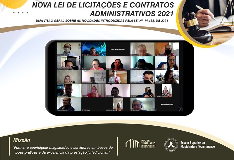 Teve início, nesta segunda-feira (09/8), o curso Nova Lei de Licitações e Contratos Administrativos 2021 – Uma visão geral sobre as novidades introduzidas pela Lei nº 14.133, de 2021. Realizado pela Escola Superior da Magistratura Tocantinense, o objetivo é capacitar e atualizar os servidores e servidoras quanto às normas e aos procedimentos advindos da Lei nº 14.133, de 2021, sempre ressaltando as diferenças em relação à legislação precedente, para possibilitar suas atividades relacionadas às contratações públicas.