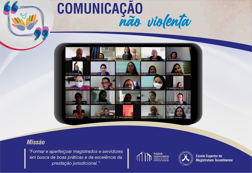 Foram finalizadas, nos meses de agosto e de setembro deste ano, as atividades das Turmas I e II do curso Comunicação Não Violenta, oferecido pela Escola Superior da Magistratura Tocantinense (ESMAT) aos magistrados coordenadores dos Cejuscs Polos; servidores do Nupemec; servidores dos Cejuscs Polos; facilitadores da Justiça Restaurativa; conciliadores/mediadores dos Cejuscs das cidades de Araguaína, Araguatins, Arraias, Colinas, Dianópolis, Guaraí, Gurupi, Miracema, Porto Nacional, Palmas, Paraíso e Tocantinópolis.