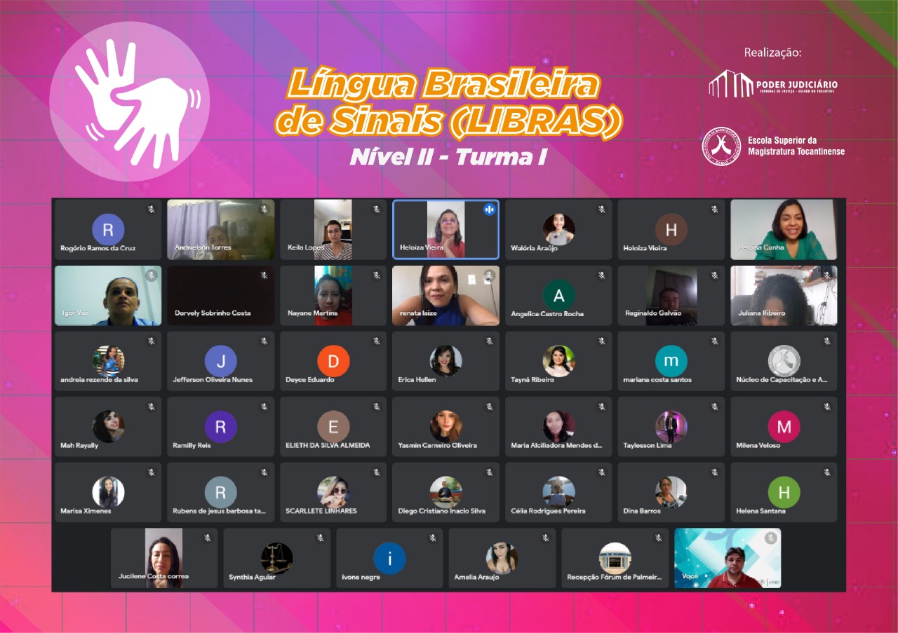 Tiveram início, nesta terça-feira (23), as aulas da primeira turma do curso Língua Brasileira de Sinais (LIBRAS) Nível II, na modalidade de ensino à distância. Realizado pela Escola Superior da Magistratura Tocantinense (ESMAT), a capacitação possui carga horária de 60 horas-aula e se estende até o dia 10 de maio deste ano.