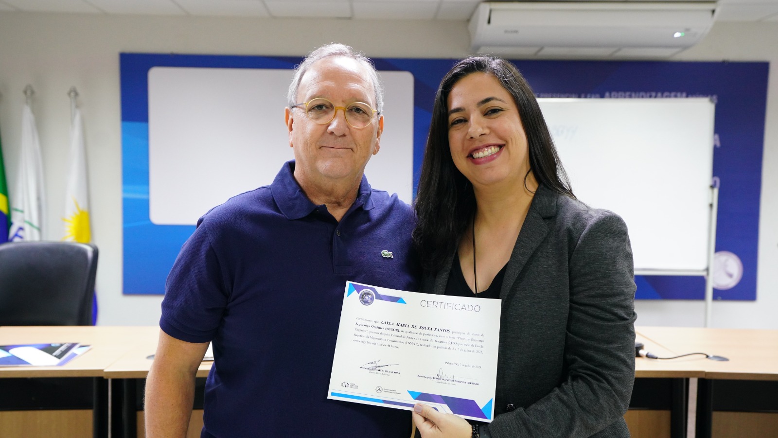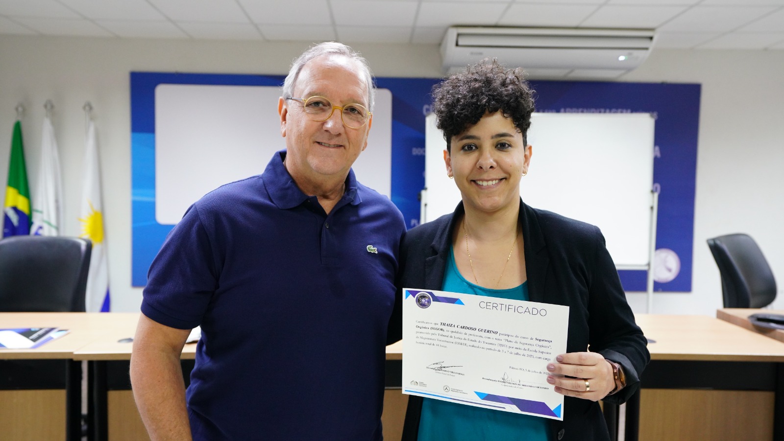 Ionara Cardoso Marques Nascimento, secretária do Juízo da Comarca de Dianópolis, também compartilhou suas impressões: "Concluir o curso de segurança orgânica é uma alegria e, ao mesmo tempo, uma responsabilidade enorme, pois agora somos agentes com conhecimento específico. Ao longo do curso, foi possível perceber o quanto precisamos avançar para termos segurança efetiva em nossa instituição. Cuidar do nosso ambiente de forma segura exige sair da 'zona de conforto', o que confronta a cultura, um fator que influencia muito as tomadas de decisões. O TJTO, por meio da Divisão de Contrainteligência (DCINT) e do Núcleo de Inteligência e Segurança Institucional (NIS), está de parabéns por se preocupar em levar um conhecimento de tão elevado nível a todos(as) nós. Saio daqui com a convicção de que temos uma missão a cumprir no longo prazo", afirmou.