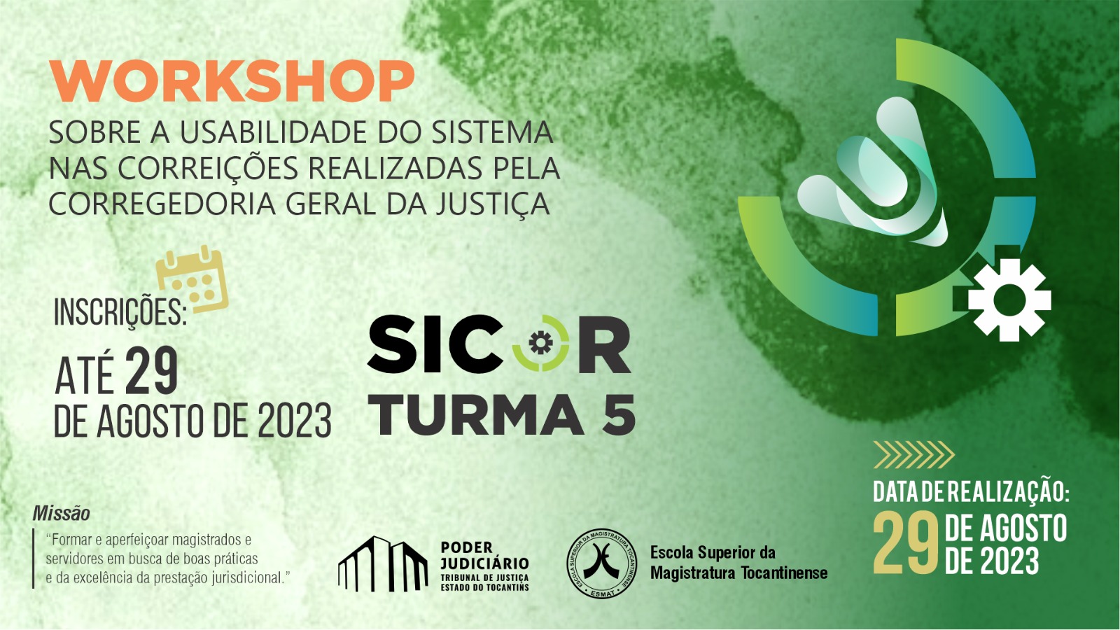 Estão abertas as inscrições para a Turma V do Workshop sobre a Usabilidade do Sistema Sicor nas Correições realizadas pela CGJUS. O objetivo do Evento é promover o conhecimento do uso do sistema e sua aplicação nas correições ordinárias realizadas pela Corregedoria Geral da Justiça.
