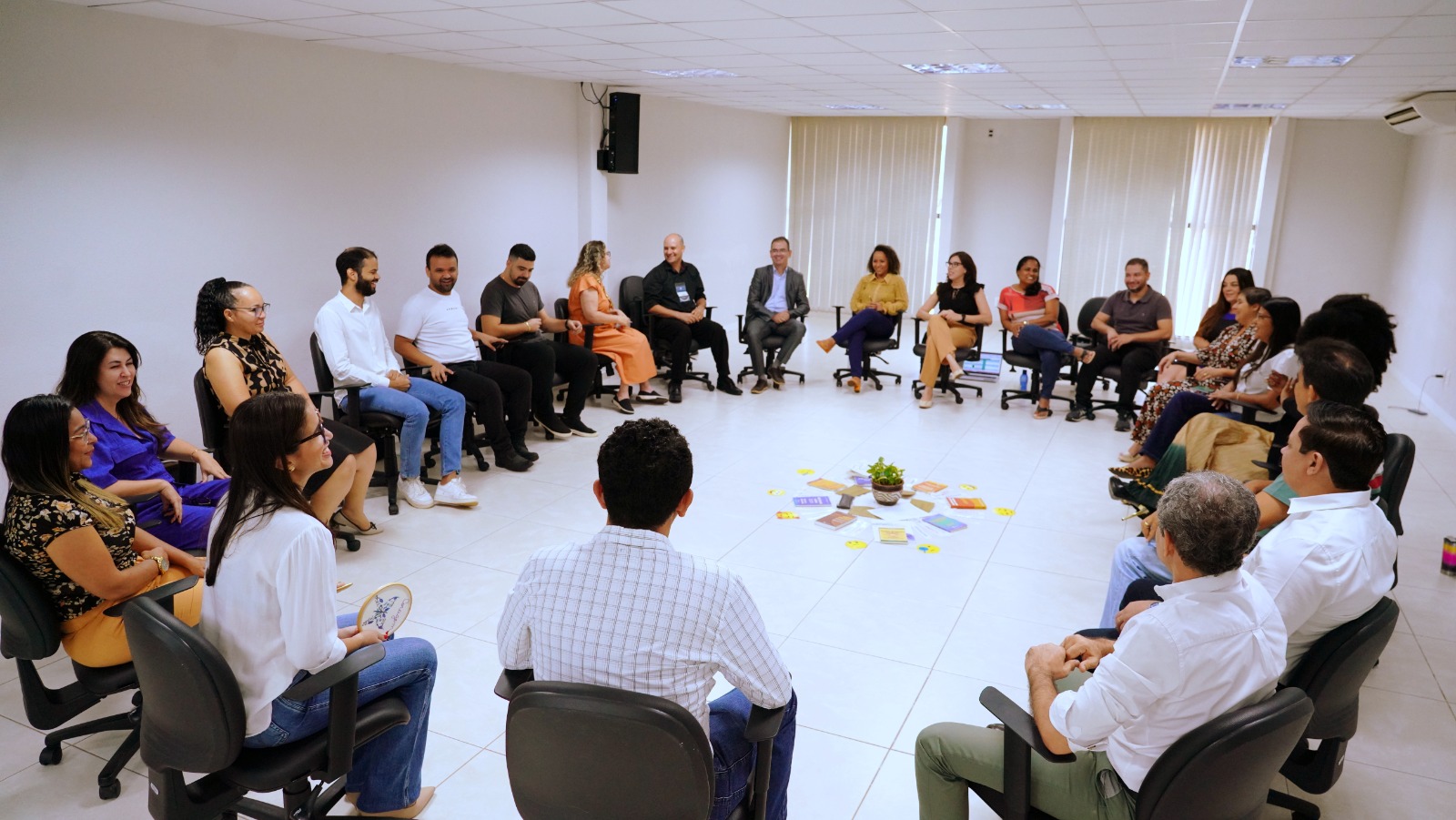 O foco do último bloco de atividades foi centrado na Formação de Formadores em Justiça Restaurativa, e a professora Taynã Nunes Quixabeira desempenhou um papel fundamental ao orientar os(as) alunos(as) por meio das temáticas do Módulo IV. Taynã comentou sobre sua perspectiva em relação ao desenvolvimento da capacitação: "Sou servidora do Tribunal de Justiça e atuo como instrutora e facilitadora de círculos de construção de paz. Hoje, tenho a honra de ser professora no curso de Formação de Formadores em Justiça Restaurativa. Este curso ofereceu a oportunidade para todos(as) os(as) alunos(as) aprofundarem seus conhecimentos na metodologia dos círculos de construção de paz", explicou.