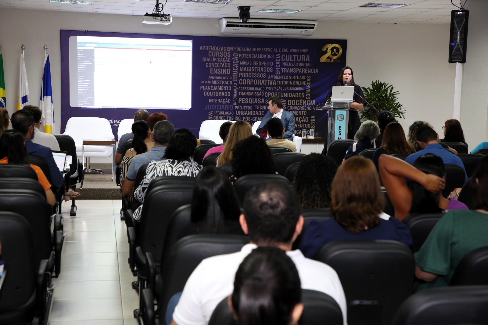 Magistrados(as) e servidores(as) do Poder Judiciário Tocantinense participaram, na tarde desta quarta-feira (31/1), do curso Automatização de Localizadores, cujo foco estava relacionado à utilização de recursos e de funcionalidades no Sistema Eproc. Com carga horária de 3 horas, a capacitação foi ministrada pela assessora jurídica do Tribunal de Justiça do Estado do Tocantins (TJTO), Valéria Fortes Bodas, de forma presencial no auditório da Esmat.