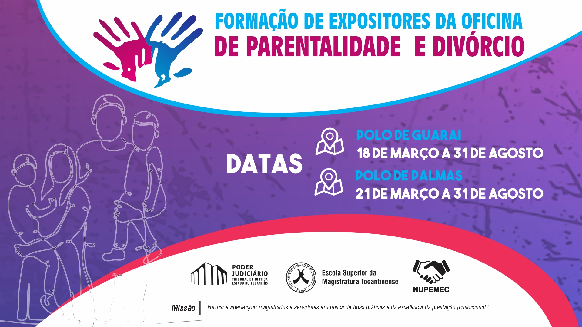 Formação de Expositores da Oficina de Parentalidade e Divórcio será realizada em Guaraí e Palmas