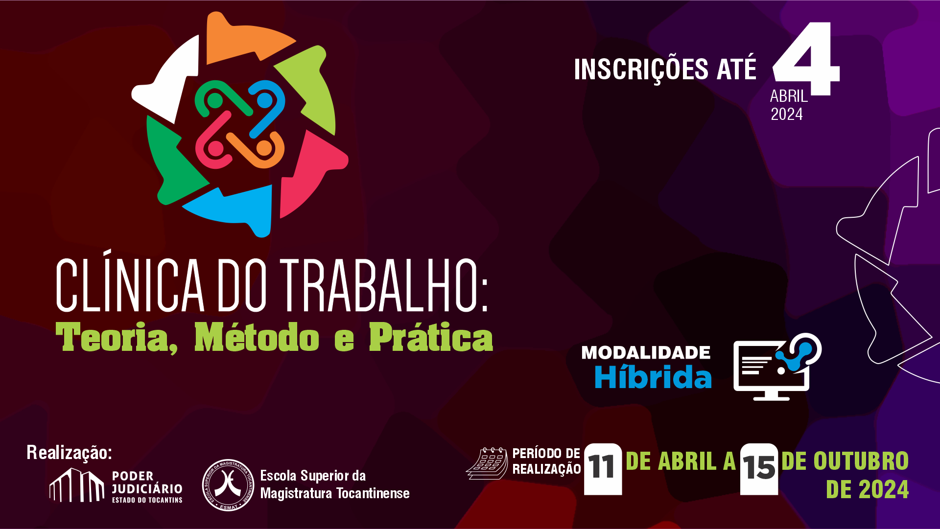 A Escola Superior da Magistratura Tocantinense (Esmat) realizará, no período de 11 de abril a 15 de outubro, um curso para abordar os referenciais teóricos para a realização da clínica do trabalho coletiva com os(as) servidores(as) do Poder Judiciário Tocantinense.