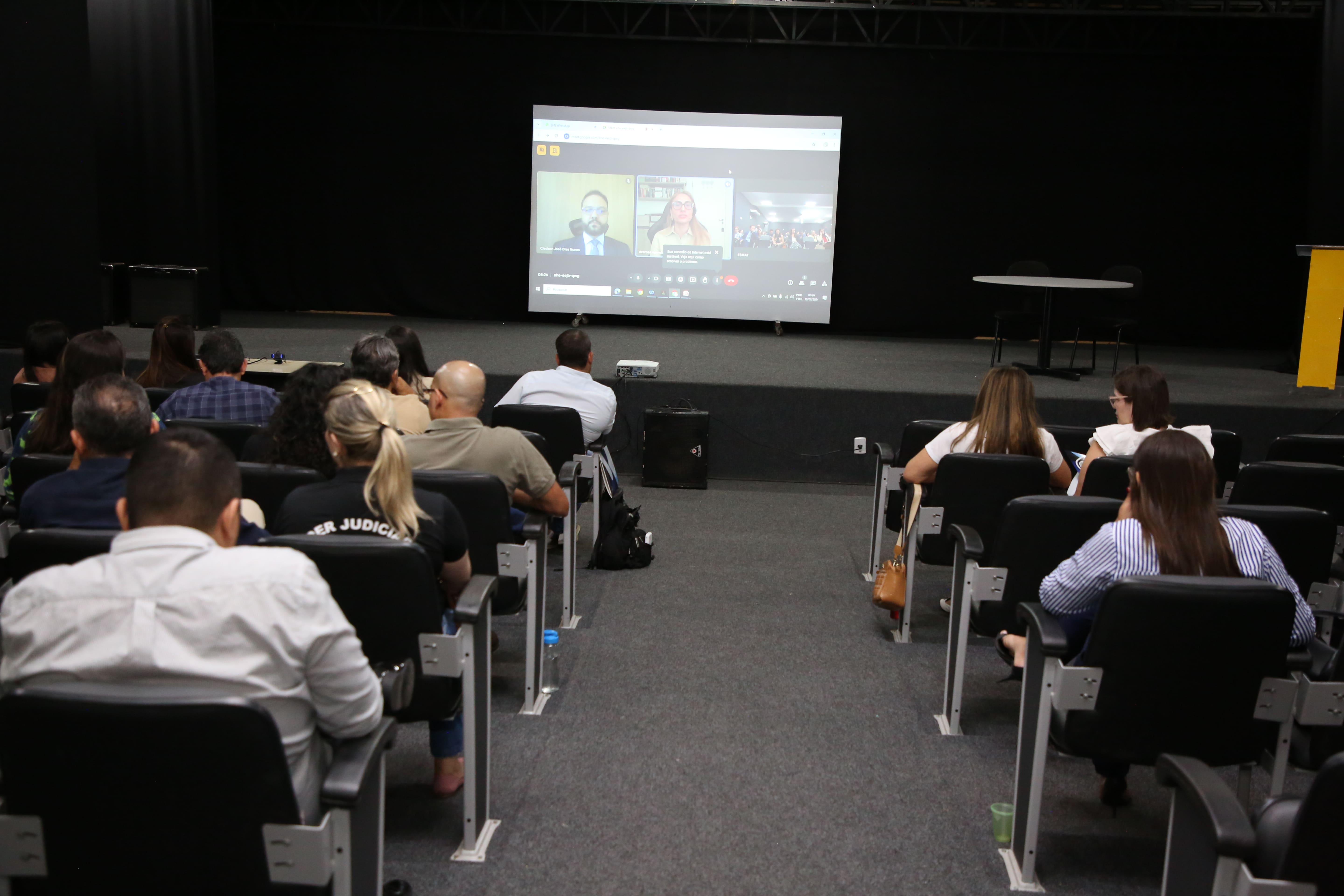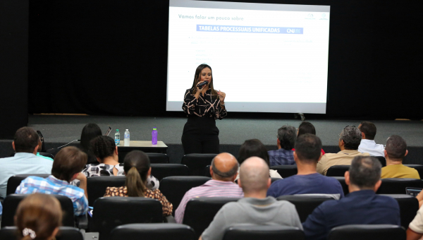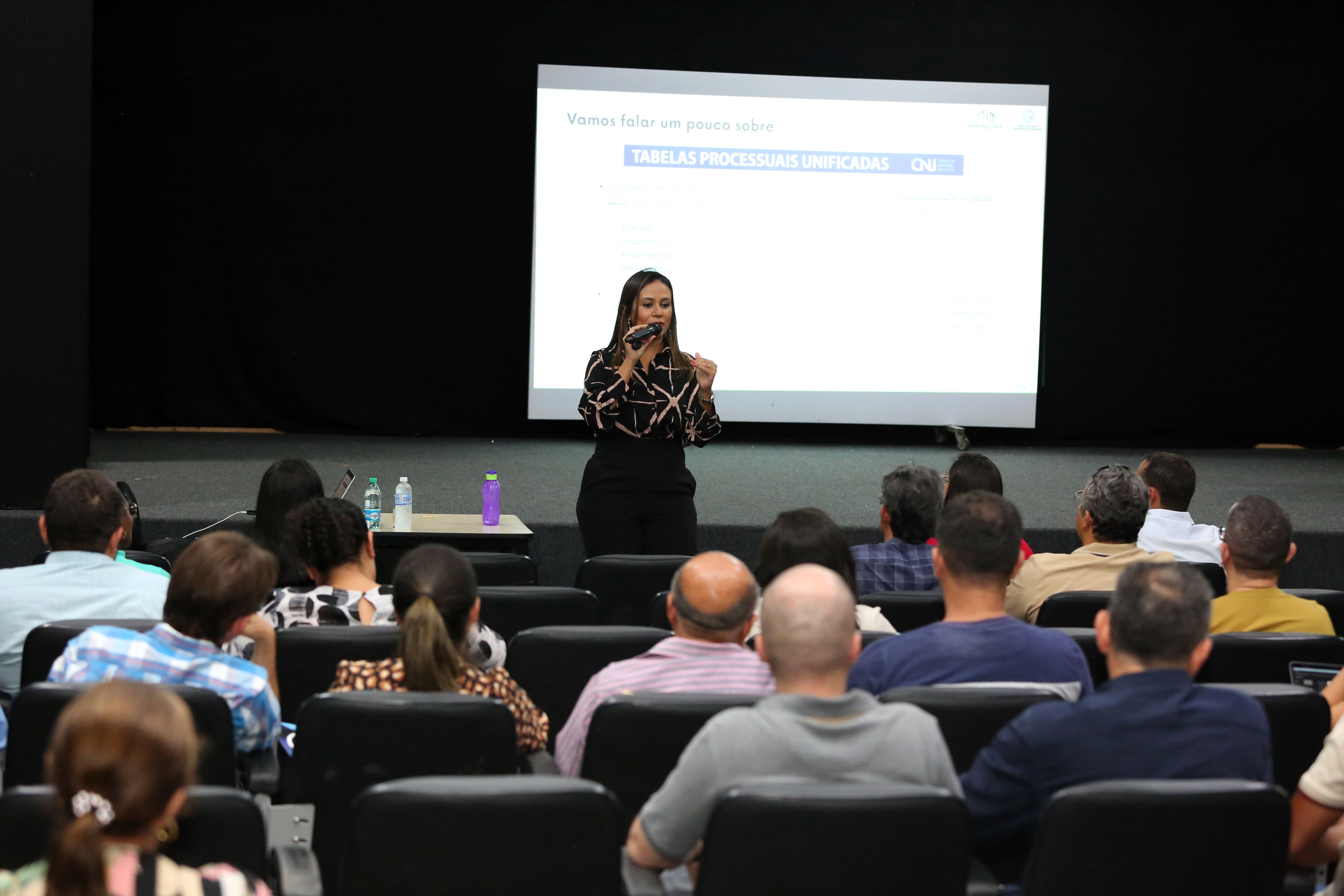 A facilitadora Darllanne Cristina dos Santos Ferreira Tacho também apresentou um painel sobre a gestão das comarcas, destacando uma visão geral e as principais funcionalidades. Complementando a programação, a facilitadora Kellen Cleya Madalena demonstrou o processo de cadastramento e movimentação processual, com foco no cumprimento das metas nacionais.