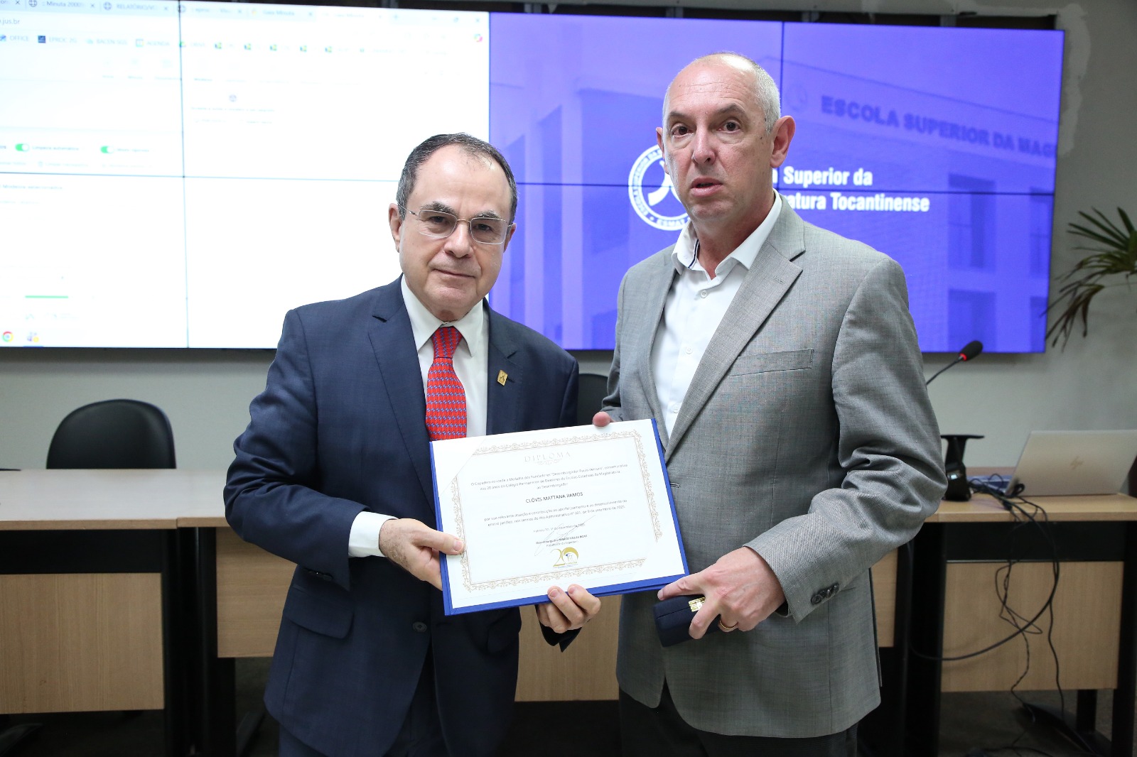 O desembargador também destacou o papel protagonista da desembargadora Maysa Vendramini Rosal, presidente do TJTO, e da desembargadora Jacqueline Adorno, vice-presidente, na condução do projeto.