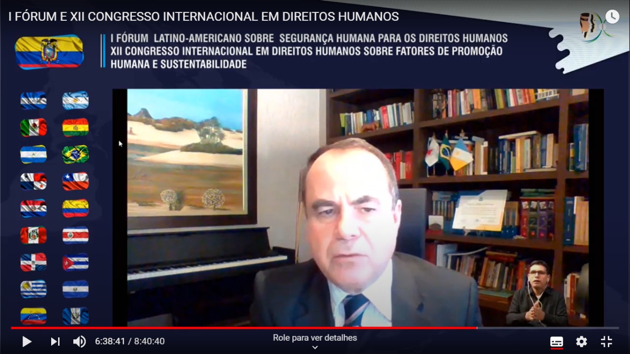 Transmitido pela plataforma Youtube com tradução simultânea para português, inglês e espanhol, o evento faz parte da programação do Primeiro Fórum Latino-Americano sobre Segurança Humana para os Direitos Humanos e XII Congresso Internacional em Direitos Humanos sobre fatores de Promoção Humana e Sustentabilidade, que teve início nesta manhã e segue até o dia 21 de outubro.