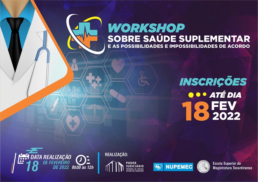 Com o objetivo de promover o conhecimento do Termo de Cooperação nº 8, de 2021, nos Cejuscs, firmado pelo Tribunal de Justiça do Estado do Tocantins e a Unimed de Palmas, para resolução das demandas de conciliação ocasionadas pelos jurisdicionados e empresas, de modo a transformar a cultura do litígio numa cultura de diálogo, que leve à solução pacífica de conflitos entre as partes envolvidas, a Escola Superior da Magistratura Tocantinense (ESMAT) realiza, no dia 18 de fevereiro, às 8h30, o Workshop sobre Saúde Suplementar e as possibilidades e impossibilidades de acordo. As inscrições abrem nesta sexta-feira (4) e vão até o dia 18 de fevereiro.