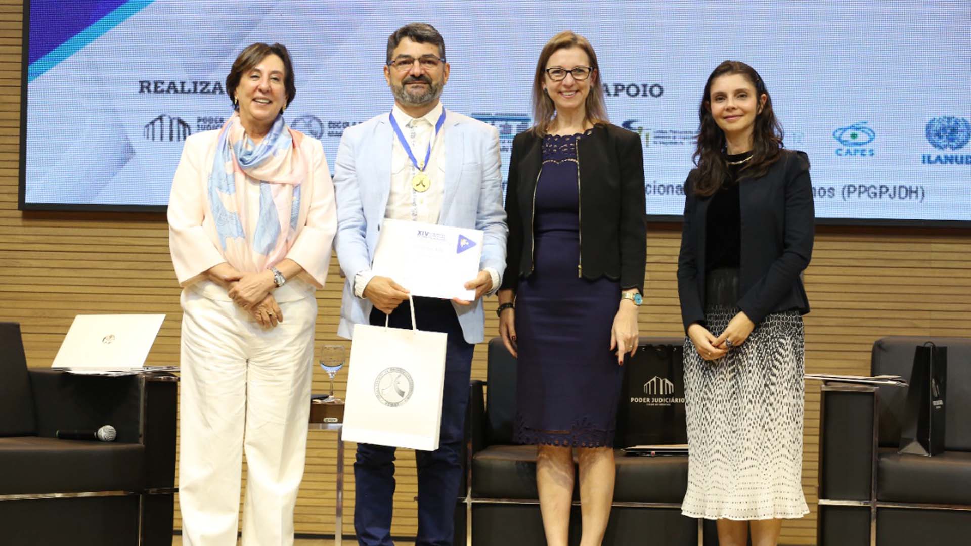 Mediador do painel, o doutor em filosofia pela Universidade de Paris, Antônio Carlos dos Santos, antes do debate, foi agraciado com a medalha de mérito acadêmico, entregue pela desembargadora Ângela Issa Haonat.