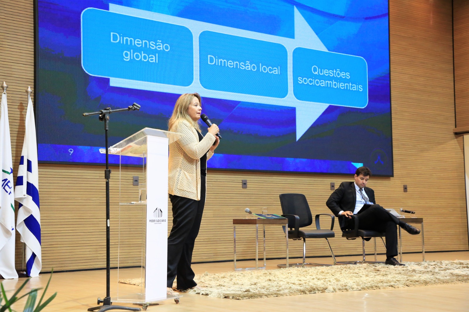 Encerrando o primeiro dia do Seminário, a doutora Thaysi Castro Coelho Andrade, da Universidade do Tocantins (UNITINS), trouxe à tona a relação entre os Objetivos de Desenvolvimento Sustentável (ODS) e as mudanças climáticas. A palestrante ressaltou a importância de se cumprirem as 169 metas estabelecidas e destacou a necessidade de um compromisso global e ações conjuntas para construir um futuro mais sustentável.