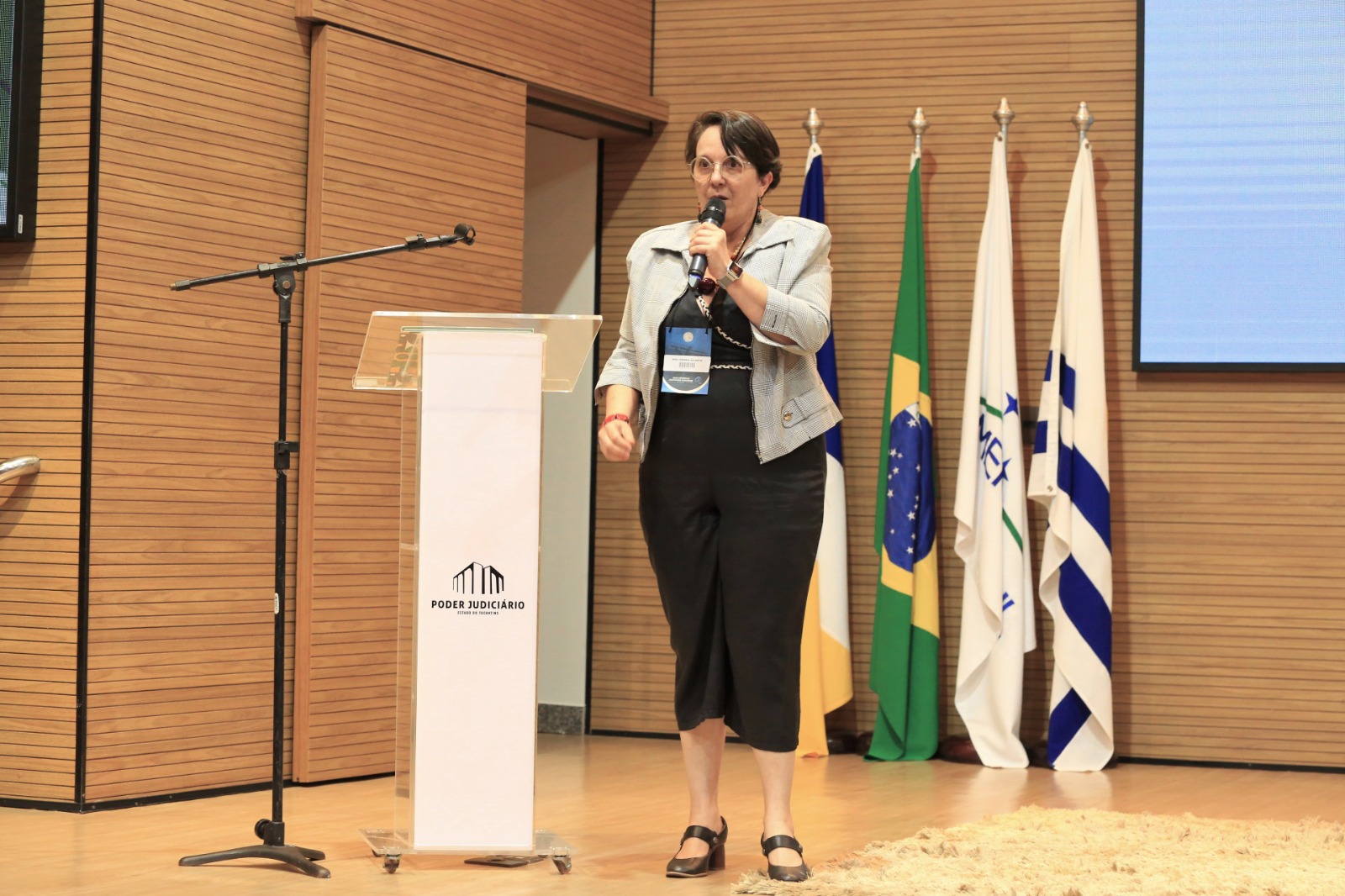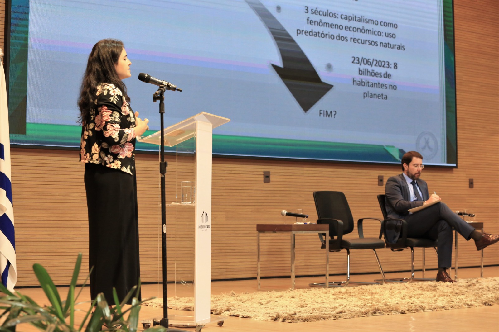 Na segunda palestra, a advogada Caroline Marques Leal Jorge Santos, pesquisadora do grupo de estudos aplicados ao meio ambiente da Universidade de São Paulo (GEAMA/USP), discorreu sobre as possíveis repercussões dos danos climáticos no Judiciário, sob a perspectiva da responsabilidade civil.