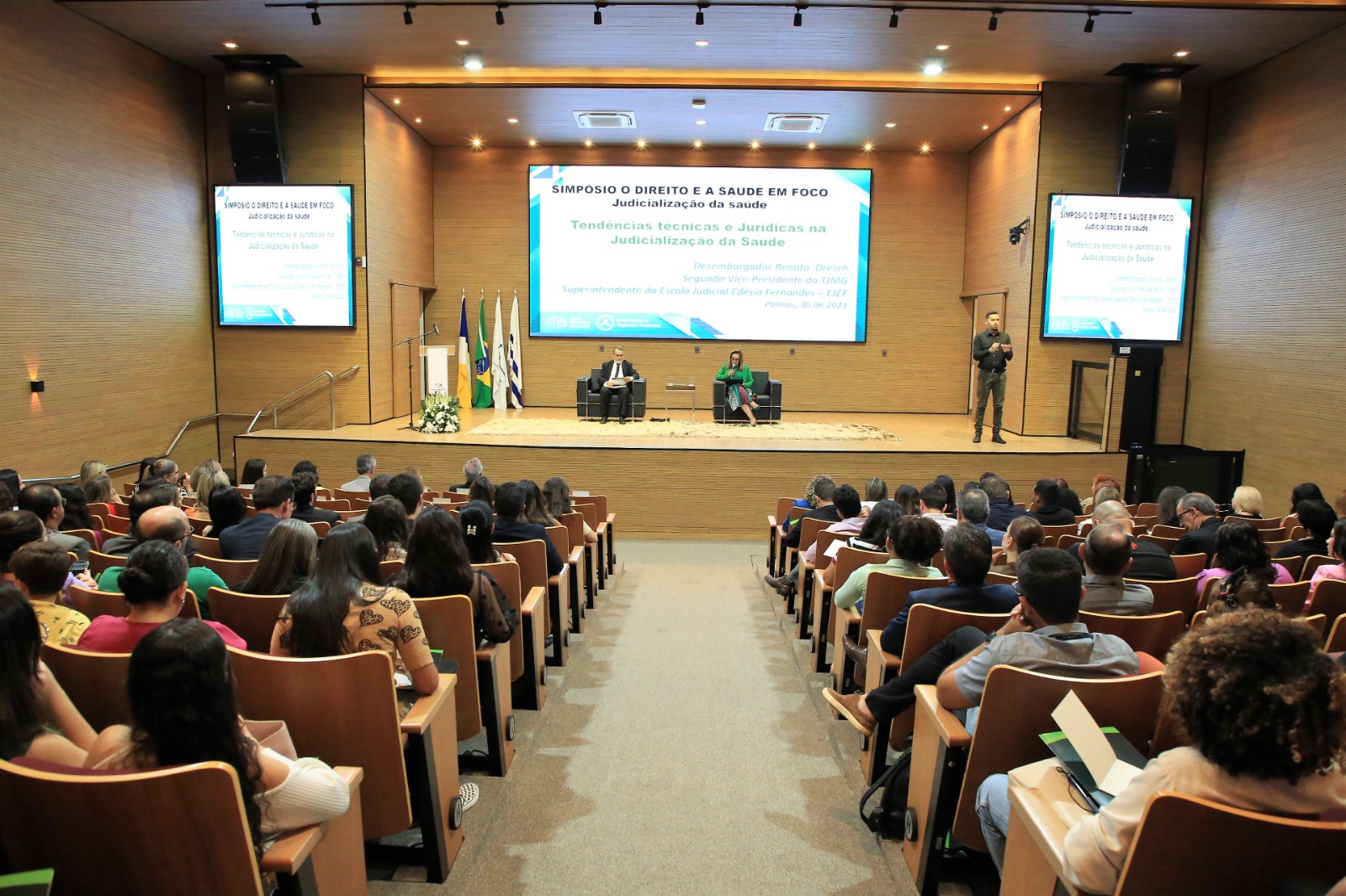 O auditório do Tribunal de Justiça do Estado do Tocantins (TJTO) é palco, nesta sexta-feira (30/6), do Simpósio "O Direito e a Saúde: em foco a Judicialização da Saúde". O Evento, realizado pela Escola Superior da Magistratura Tocantinense (ESMAT), reúne autoridades, especialistas e profissionais da área para discutir os desafios e buscar soluções relacionadas à judicialização da saúde no País.