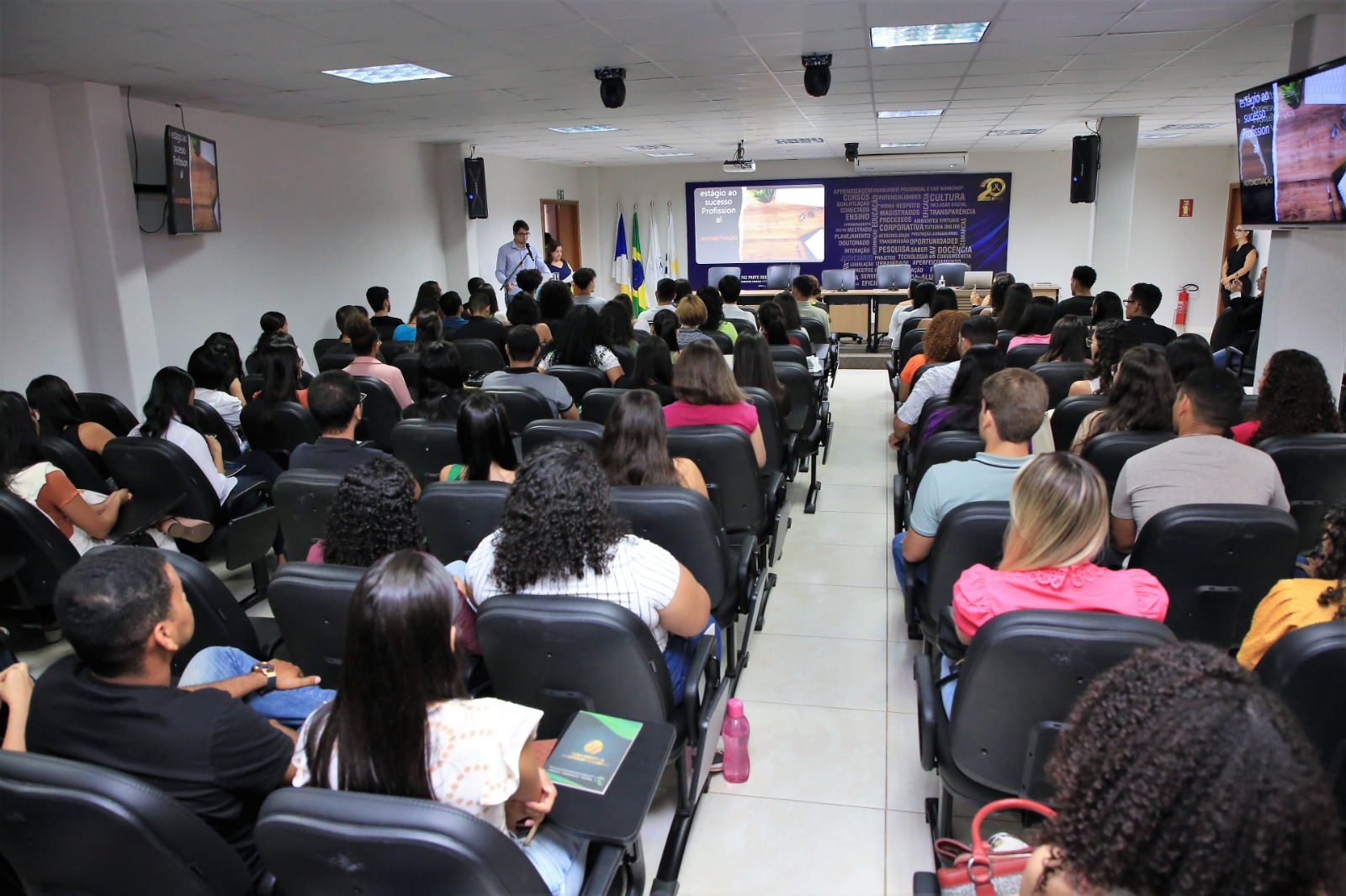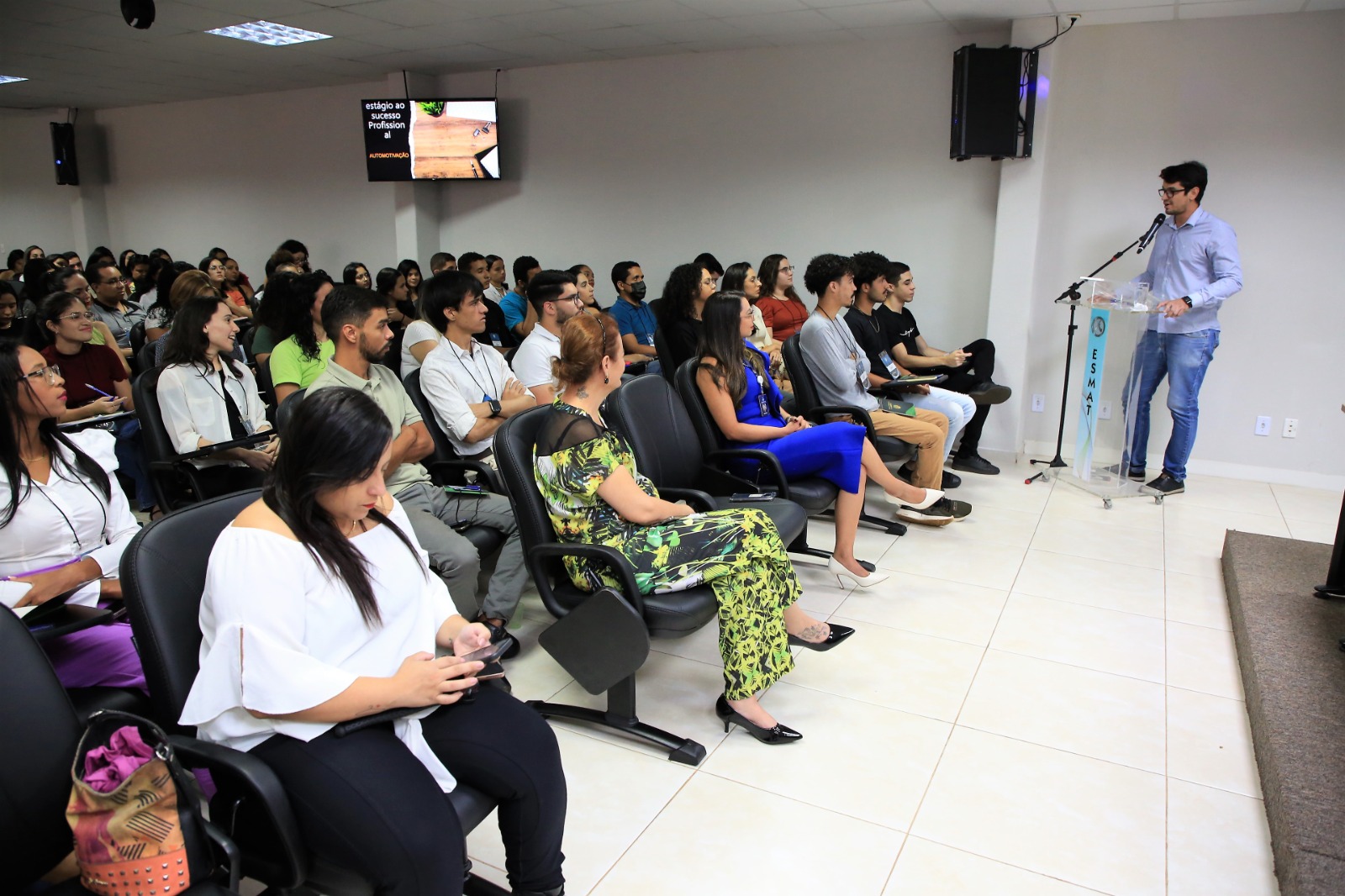 Em comemoração ao Dia do Estagiário, celebrado nesta sexta-feira, 18 de agosto, os(as) estagiários(as) do Poder Judiciário Tocantinense participaram, no auditório da Escola Superior da Magistratura Tocantinense (ESMAT), do Seminário “A Repercussão do Estágio na Carreira Profissional”. A ação teve como tema o Autoconhecimento e o Autodesenvolvimento como fundamentos para o crescimento na carreira profissional.