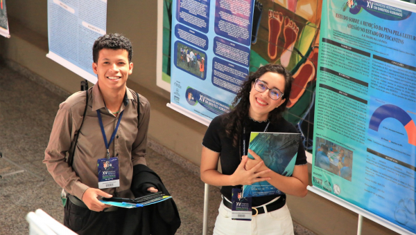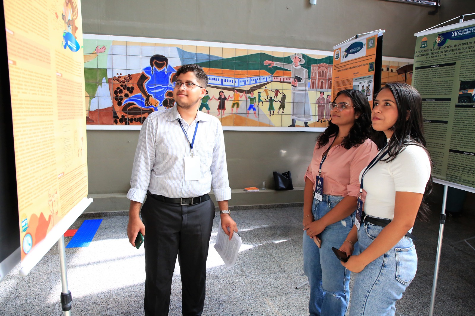 A Esmat convida todos os interessados e inscritos no Congresso para conferirem a exposição de banners, que exibe os resultados dos 60 trabalhos acadêmicos realizados sob a orientação dos professores participantes do evento. Os materiais estão disponíveis no hall de entrada, refletidos no espelho d'água do Tribunal de Justiça do Estado do Tocantins (TJTO), demonstrando o comprometimento com a pesquisa científica.
