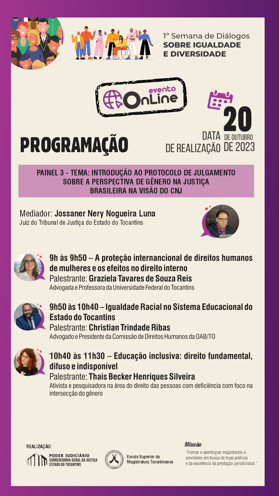 E para se inscrever na Atividade 3, que também será realizada à distância, com transmissão ao vivo por meio da Plataforma da Esmat, no dia 20/10, às 8h30, clique aqui.