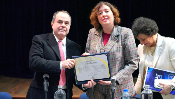 Também na ocasião, o desembargador Marco Villas Boas, diretor geral da Esmat, entregou o Medalhão Esmat para a professora doutora Lígia Carvalho Abreu, Professora Associada da Universidade Lusófona.