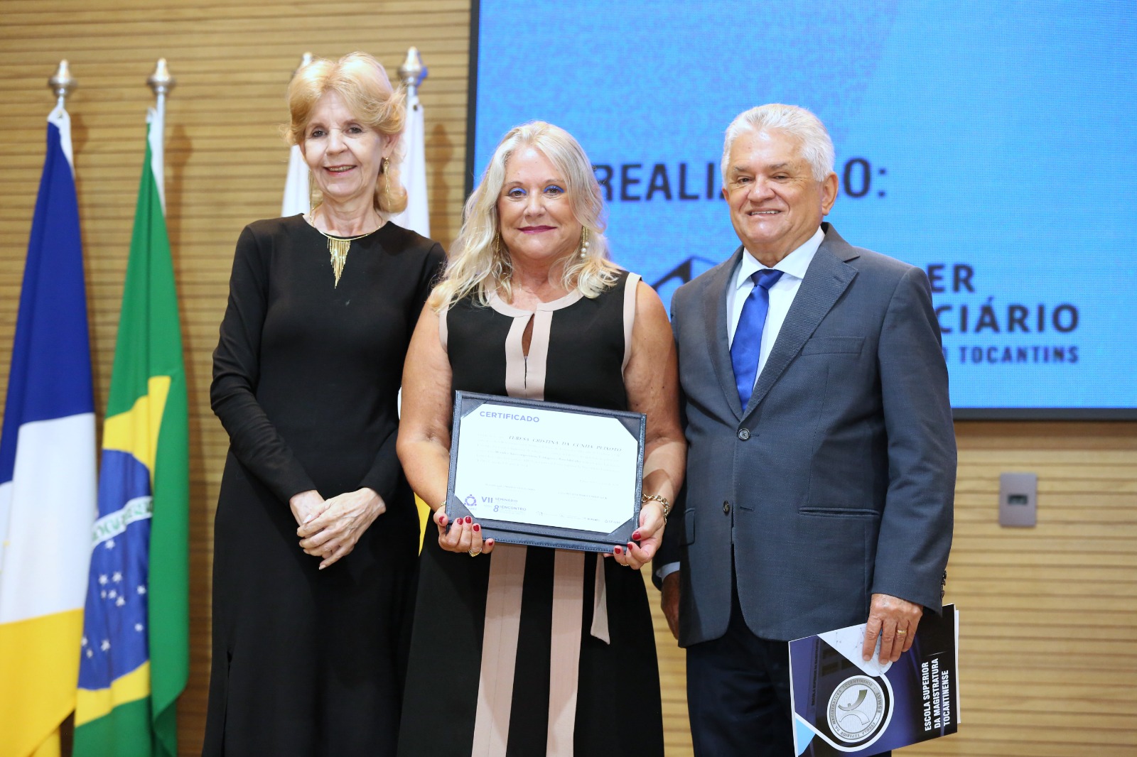 A palestrante, desembargadora Teresa Cristina da Cunha Peixoto, do Tribunal de Justiça de Minas Gerais (TJMG), iniciou sua apresentação elogiando o Poder Judiciário Tocantinense por sua direção majoritariamente feminina.