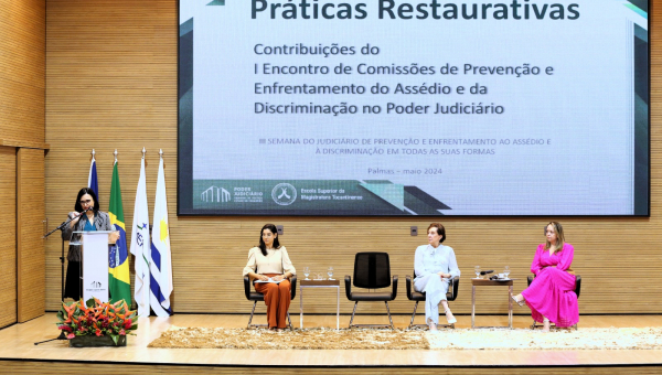 Inovações na prevenção e enfrentamento ao assédio e à discriminação; a implantação da Política de Prevenção e Enfrentamento ao Assédio do Tribunal de Contas do Tocantins (TCE/TO); e as práticas restaurativas e as contribuições do I Encontro de Comissões de Prevenção e Enfrentamento do Assédio e da Discriminação no Poder Judiciário foram os temas discutidos no encerramento da III Semana do Judiciário de Prevenção e Enfrentamento ao Assédio e à Discriminação em todas as suas formas, na manhã desta sexta-feira (10/5), no Tribunal de Justiça do Tocantins (TJTO).