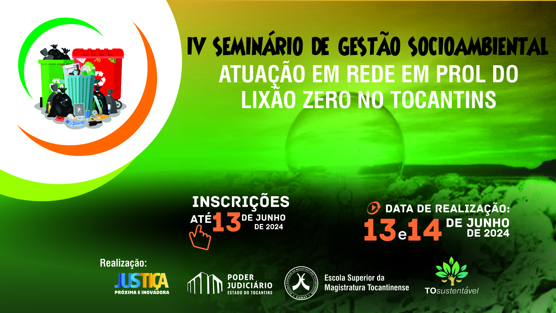 O IV Seminário de Gestão Socioambiental com o tema: Atuação em rede em prol do lixão zero no Tocantins será realizado nesta semana, nos dias 13 e 14 de junho (quinta e sexta-feira), no auditório do Tribunal de Justiça do Estado do Tocantins (TJTO).