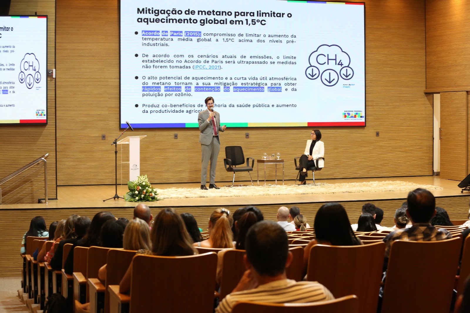 Segundo o palestrante, o setor de resíduos sólidos representa entre 3 a 5% das emissões de gases mundiais, sendo este bastante significativo para as mudanças climáticas. “A geração de resíduos, apesar de a gente entender que resíduos sólidos tem que se minimizar, o mundo projeta uma expansão crescente”, enfatizou, ressaltando que o desafio que o mundo enfrenta para fazer o descarte adequado dos resíduos.
