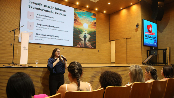 Servidores e servidoras participaram nesta quinta-feira (8/9) da palestra “Saúde Mental e Produtividade: Como Manter o Bem-Estar no Trabalho” realizada pela palestrante Luciana Resende. A iniciativa faz parte da 9ª edição da Semana da Saúde do Judiciário do Tocantins e aconteceu no auditório do Tribunal de Justiça do Tocantins (TJTO).