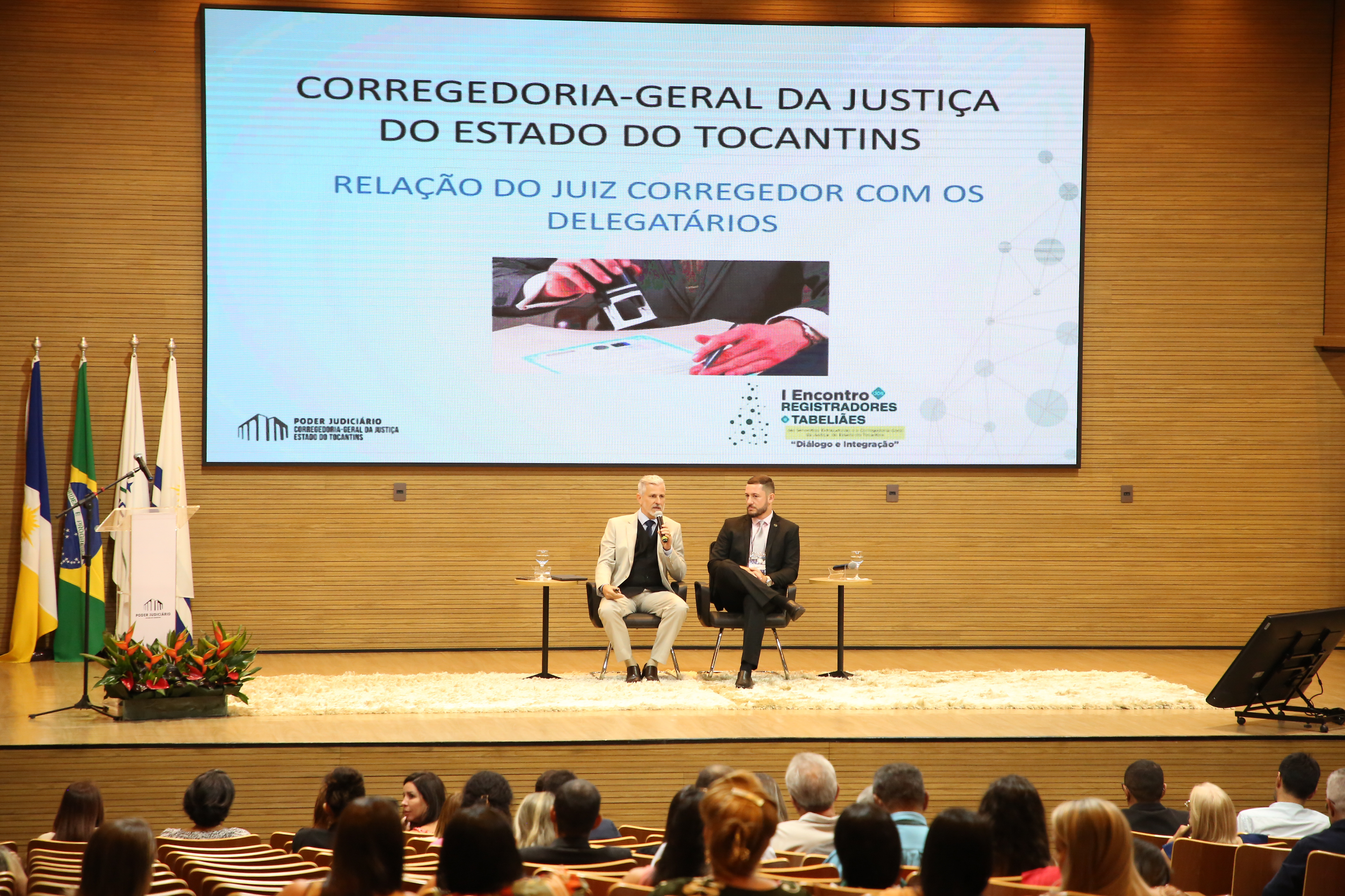 Diálogo e Integração. Este é o tema do I Encontro Estadual dos Registradores, Registradoras, Tabeliães e Tabeliãs das Serventias Extrajudiciais e a Corregedoria Geral da Justiça do Estado do Tocantins (CGJUS). O Evento teve início na quarta-feira (14/08) e segue ao longo desta quinta-feira (15/08), no auditório do Tribunal de Justiça do Tocantins.