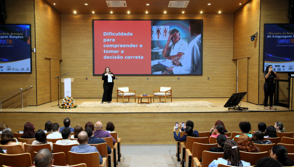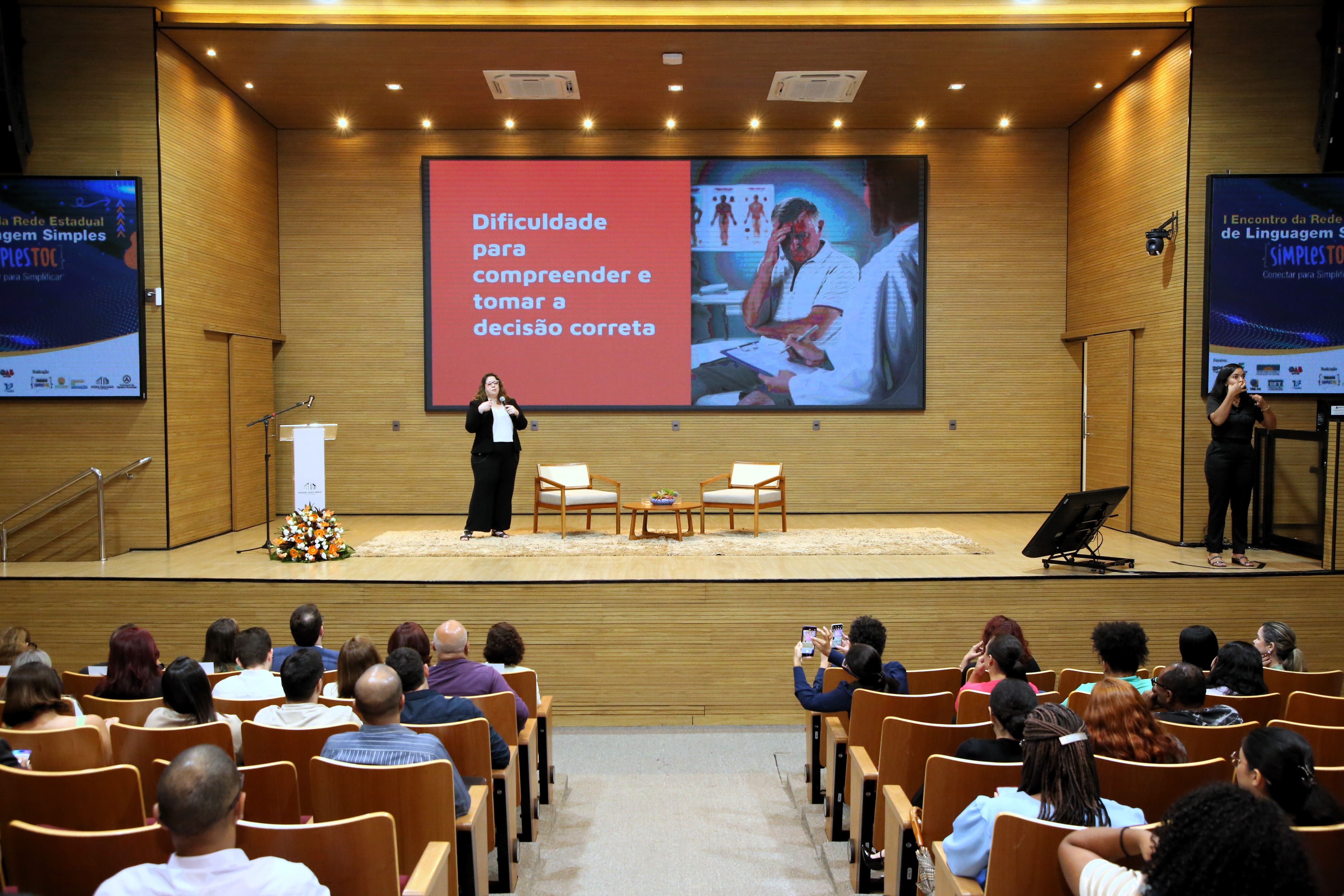 Com o tema “Linguagem Simples: construindo uma cultura entre as instituições públicas”, Mônica destacou que a simplificação vai além da remoção de termos complexos: trata-se de uma transformação cultural, em que instituições e agentes públicos trabalham juntos para estabelecer uma comunicação mais acessível e eficiente.
