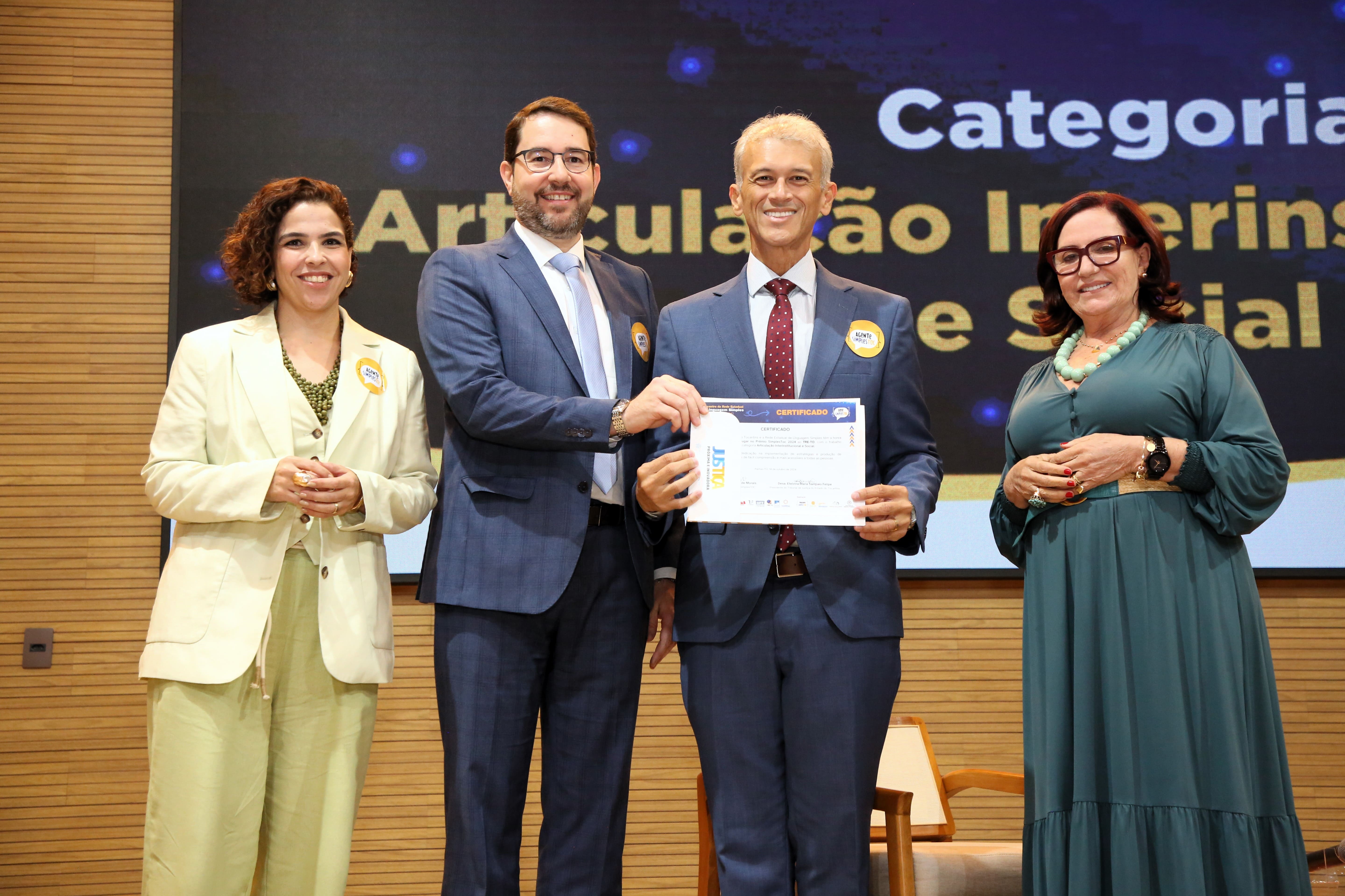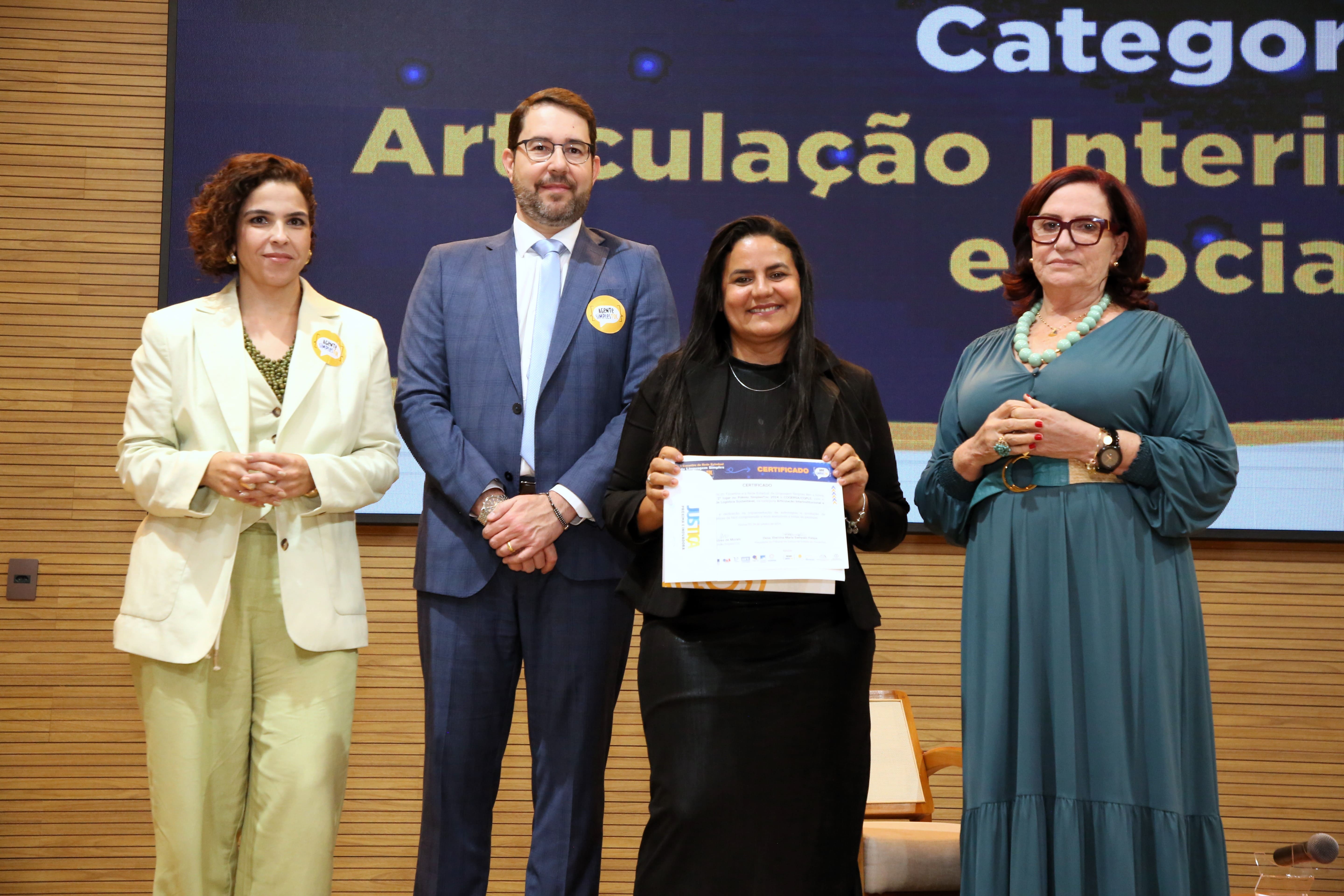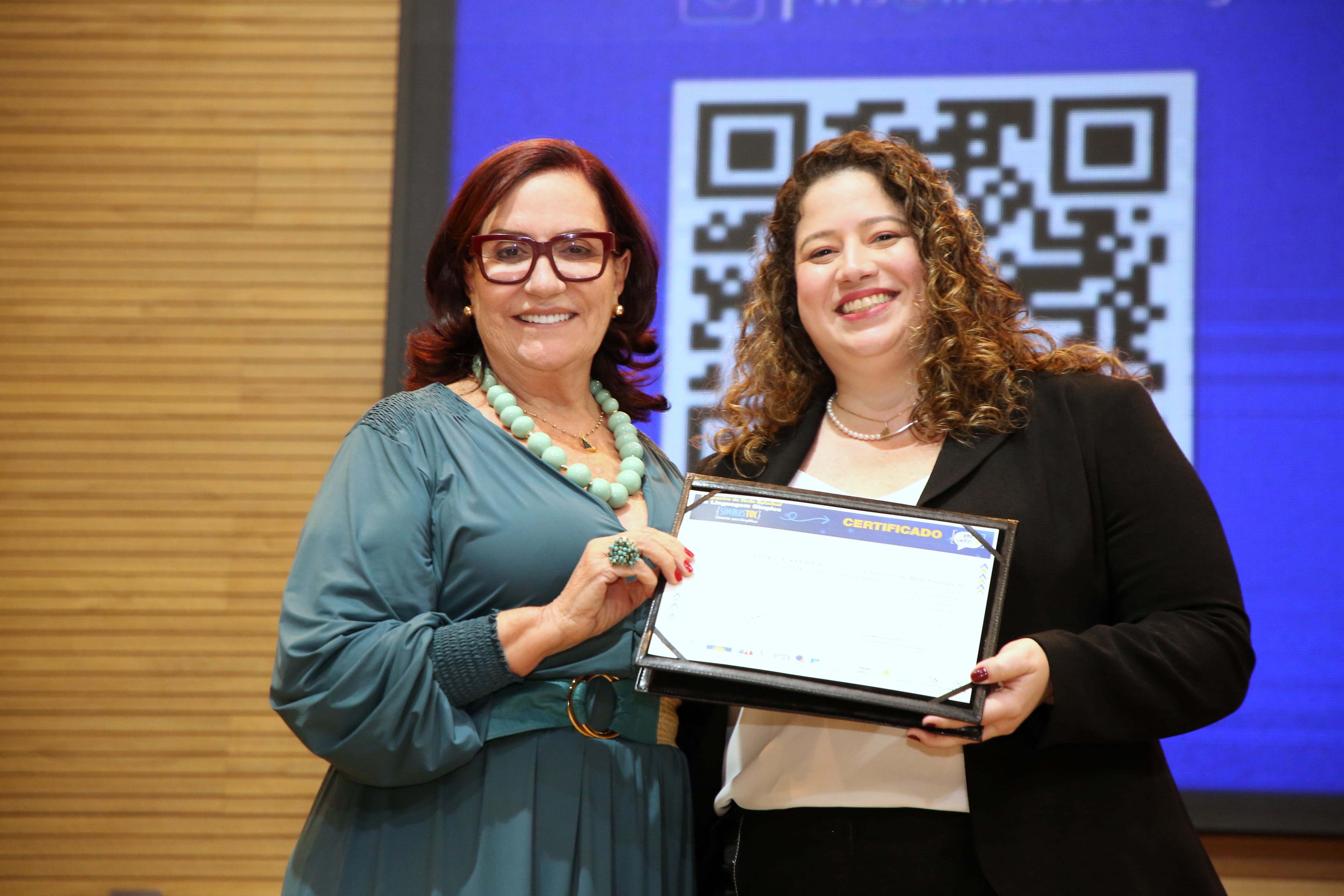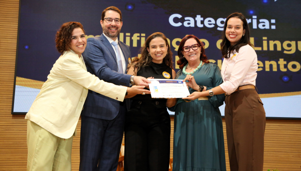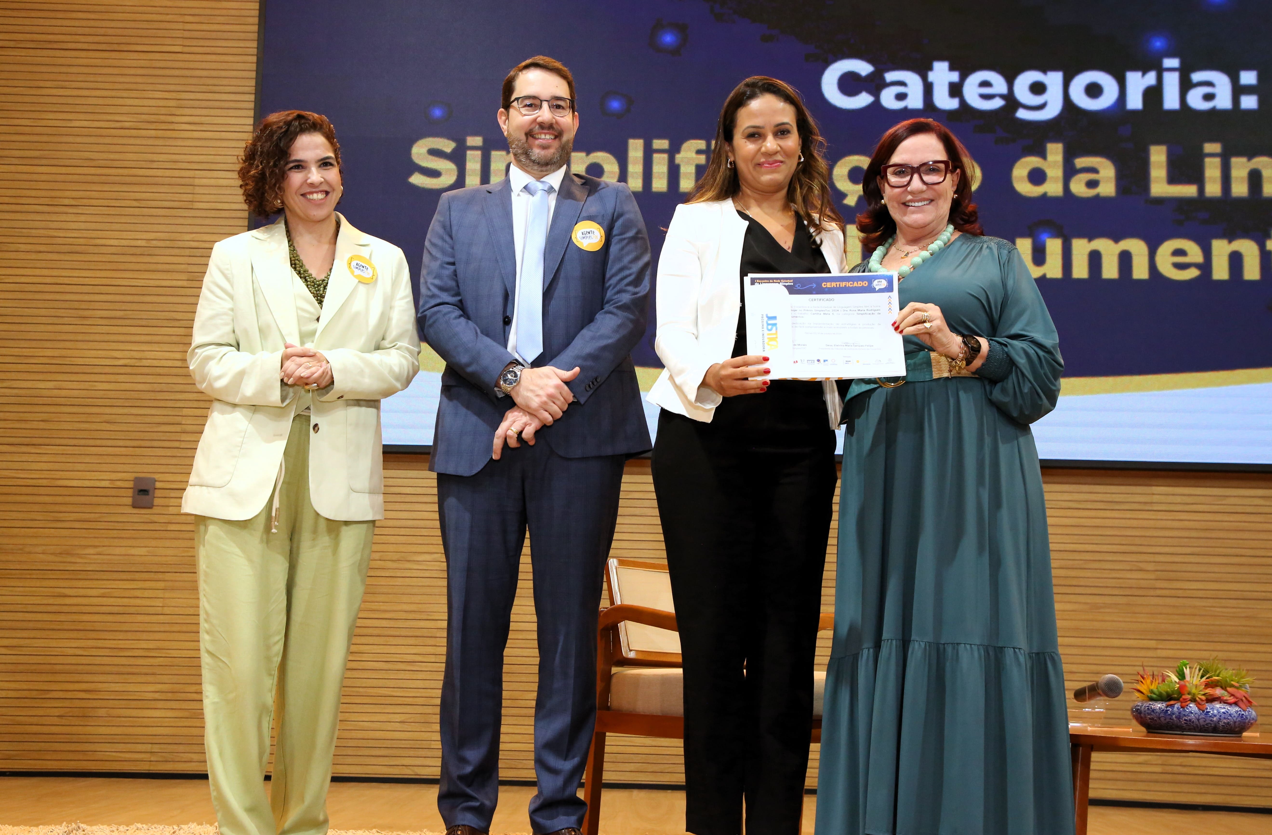 Durante a cerimônia, Adelyse Morais Lopes, UX Writer e coordenadora do Programa de Linguagem Simples do TJDFT, foi homenageada por sua contribuição ao SimplesTOC. O juiz Roniclay Alves de Morais entregou o certificado em reconhecimento ao compartilhamento de recursos inovadores, como o jogo Simplifique e modelos de mandados simplificados.