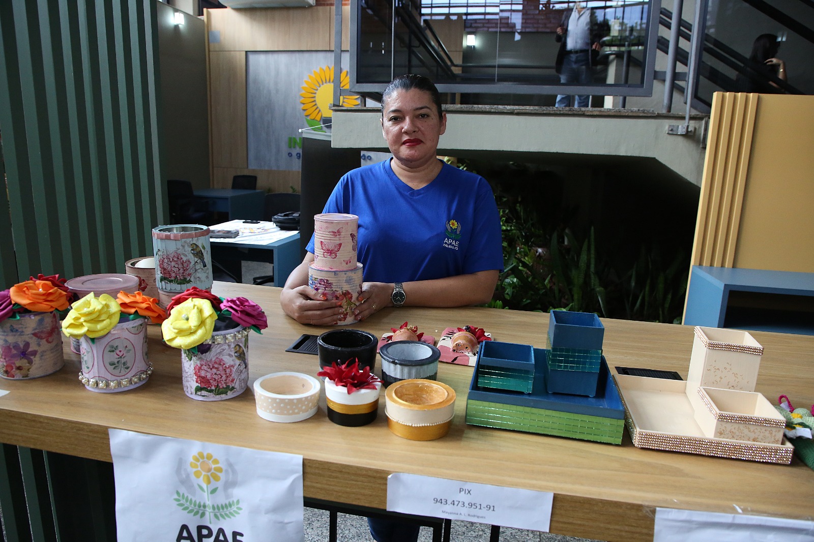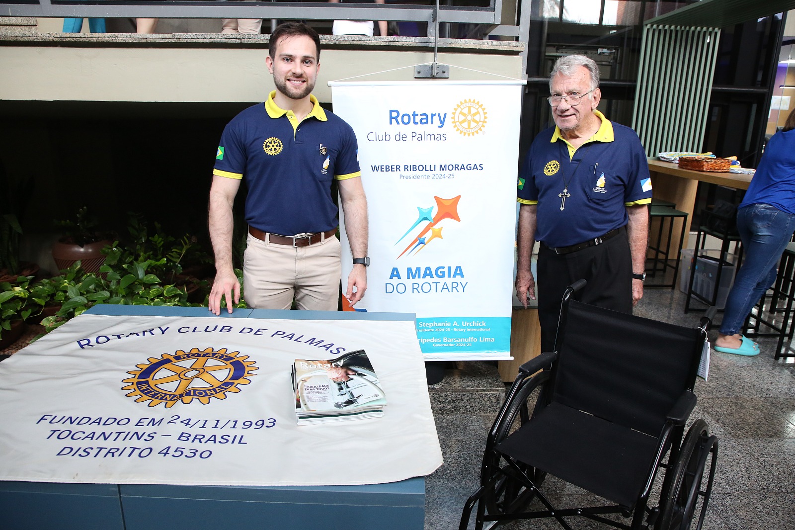No espaço do Rotary Club, sob a coordenação de Weber Moragas, o foco foi o projeto de mobilidade para doação de cadeiras de rodas e de cadeira de banho a pessoas carentes. A instituição levou duas peças para ilustrar a ação. A APAE Palmas levou tapetes e outros itens artesanais produzidos pelos(as) alunos(as) e membros da instituição, que costumam fabricar e comercializar esses produtos. Já a empresa M.A. Produtos Naturais, de propriedade do senhor Eliano Barros, apresentou uma variedade de castanhas, frutas secas e outros produtos saudáveis dessa mesma categoria.