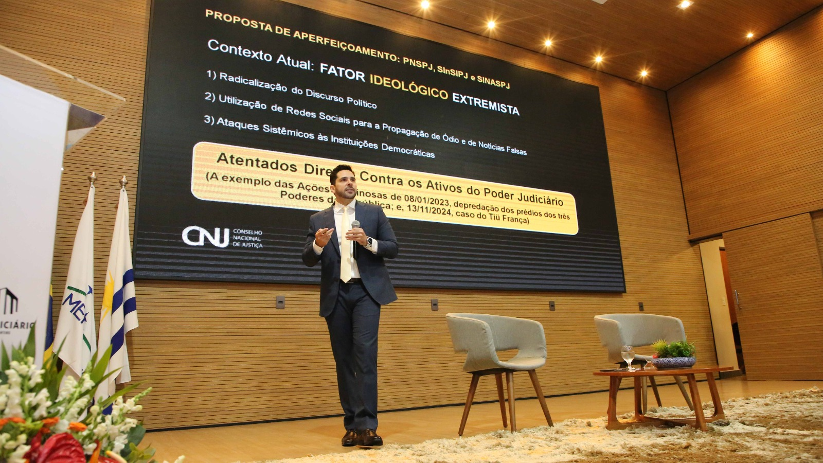 "Para evitar esses eventos aleatórios, nessa situação de desordem se faz necessária uma estratégia própria, que confira maior capacidade de produção de conhecimento para as unidades de inteligência e aumentando a abrangência das ações especializadas de prevenção", disse, ao defender a integração (atuação conjunta) e a interoperatividade (fluxo transparente de dados e informações) das unidades e dos sistemas de inteligência do Poder Judiciário.