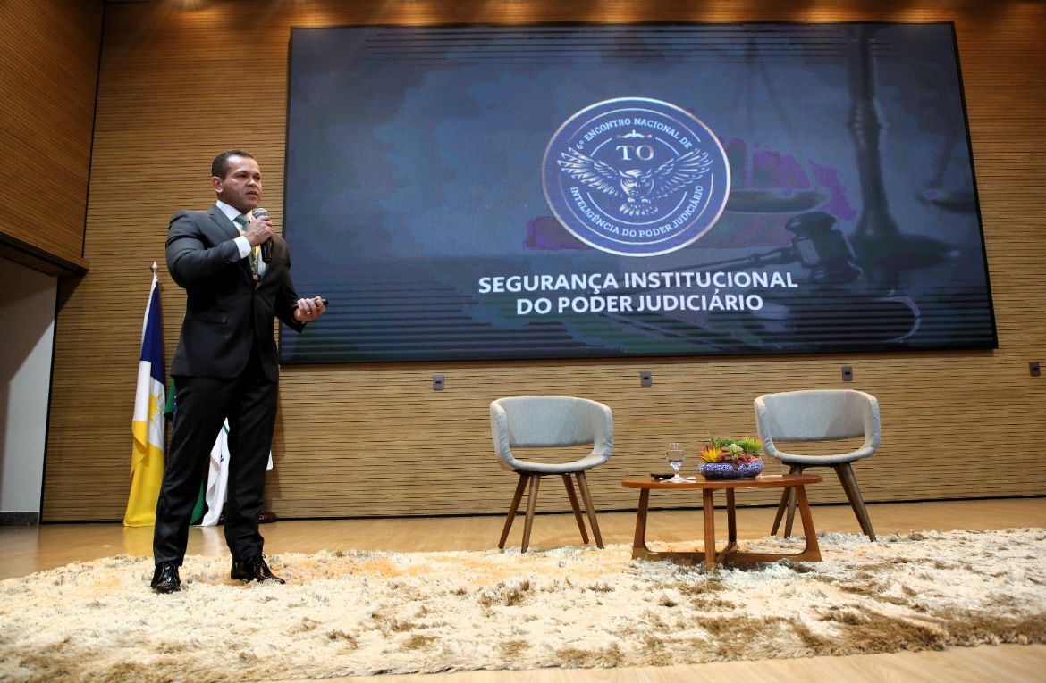A segunda palestra, proferida por Alexandre Magno de Souza Nunes, coronel da Polícia Militar do Maranhão e assessor de Segurança e Inteligência do TRE-MA, abordou a atividade de Inteligência aplicada à proteção de autoridades do Poder Judiciário, duas áreas complementares.