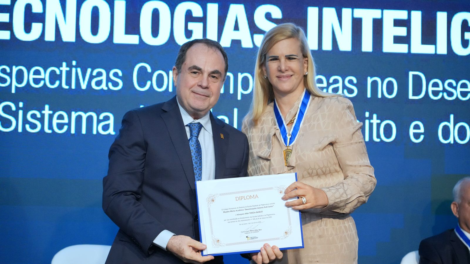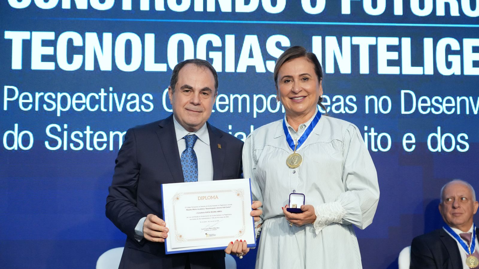 Na ocasião, também foi realizada a entrega da Medalha Desembargador Antônio Rulli Júnior, honraria que reconhece contribuições relevantes ao sistema de justiça. Foram agraciados o desembargador Cláudio Dell’Orto (em nome do desembargador Ricardo Couto), a senadora Kátia Abreu e a presidente Ana Tereza Basílio.