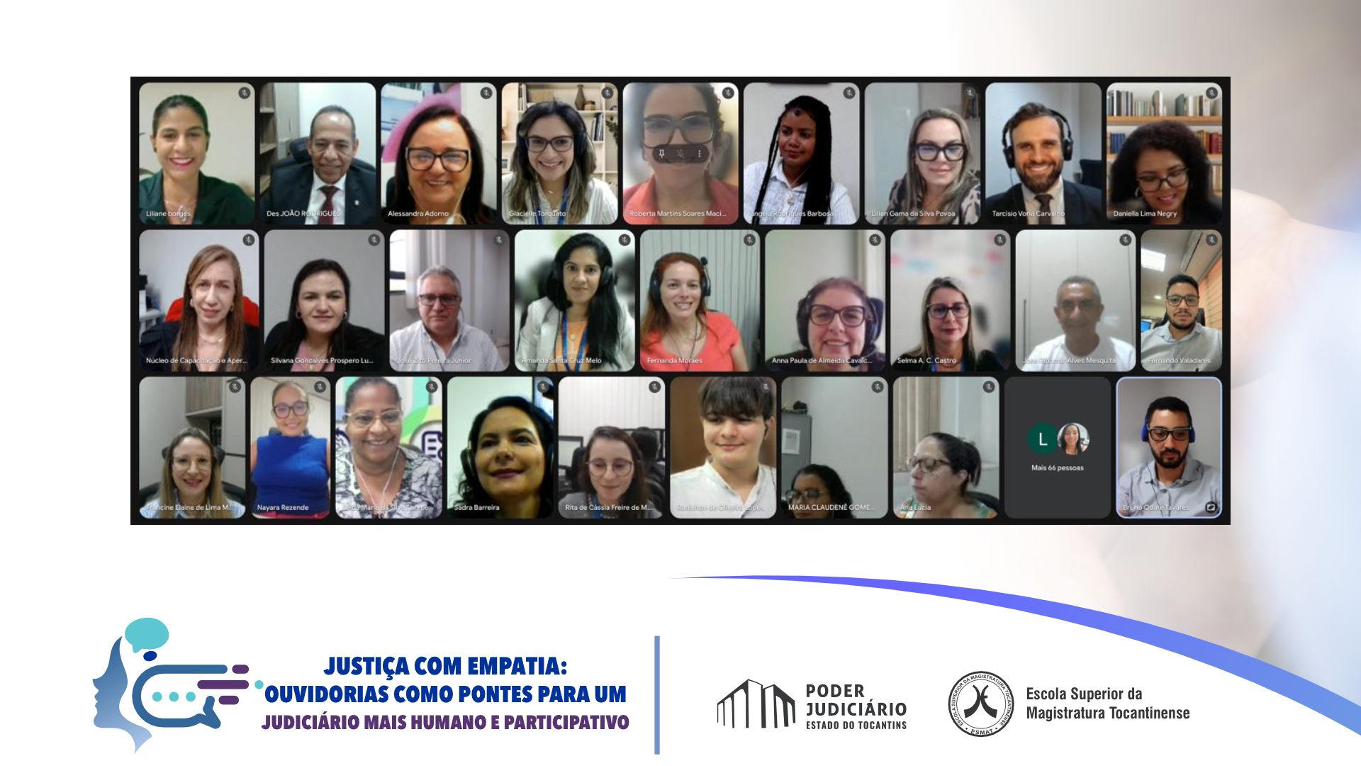 Mais de cem pessoas participaram, na tarde desta quinta-feira (12/6), da palestra virtual “Justiça com Empatia: Ouvidorias como Pontes para um Judiciário Mais Humano e Participativo”. A proposta, idealizada pela Ouvidoria Judiciária com apoio da Escola Superior da Magistratura Tocantinense (Esmat), surgiu com o objetivo de aprimorar a comunicação, fortalecer a empatia no atendimento e estimular a inovação na Ouvidoria do Sistema Judiciário do Tocantins.