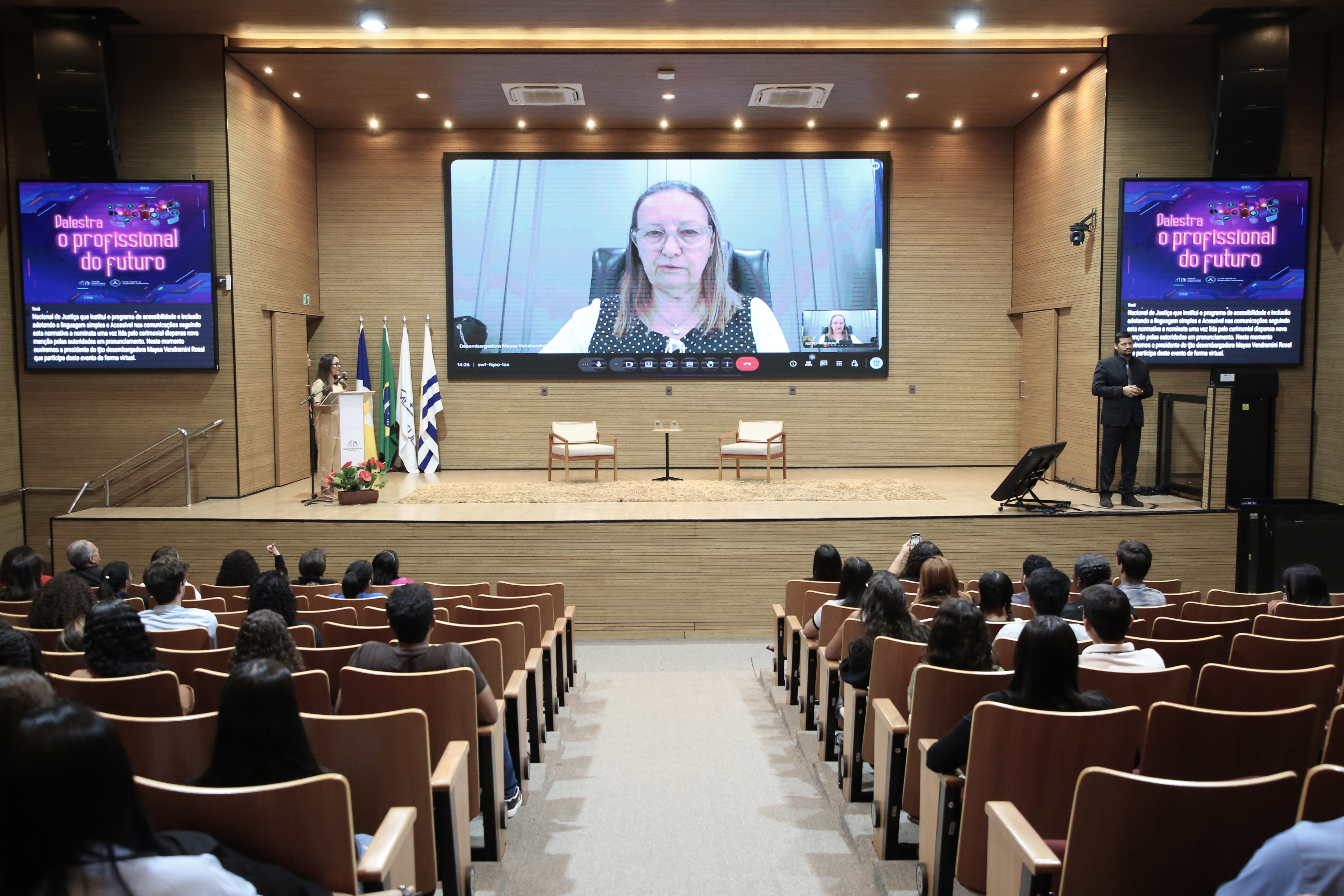 A abertura contou com a participação por videoconferência da desembargadora Maysa Vendramini Rosal, presidente do TJTO, que destacou a importância do estágio para a formação de futuros(as) profissionais.