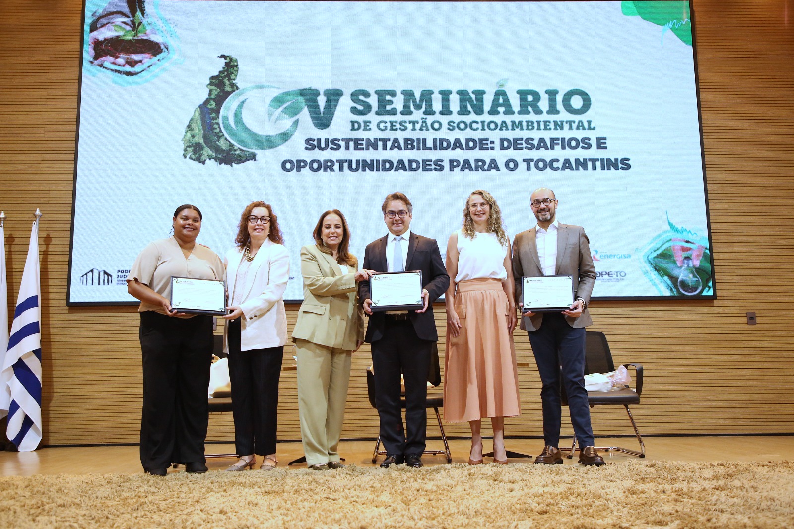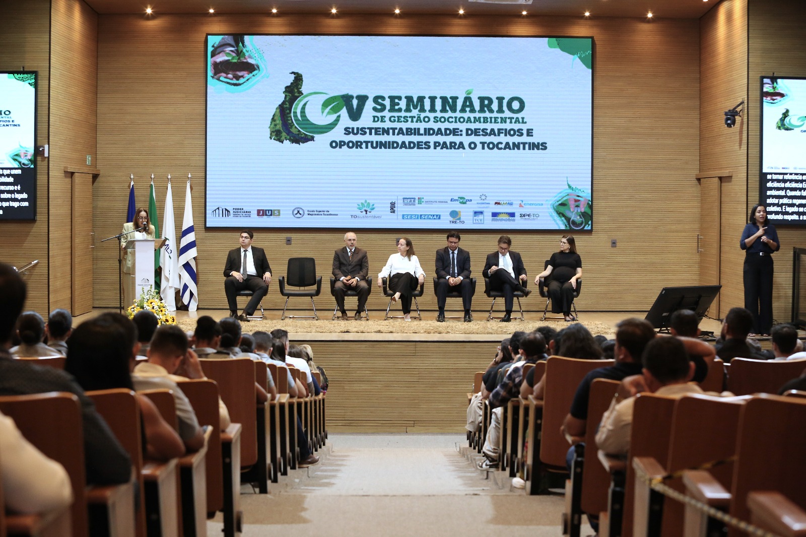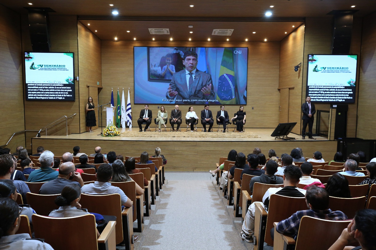 Na data em que se celebra o Dia da Amazônia (5 de setembro), o Tribunal de Justiça do Estado do Tocantins (TJTO), a Coordenadoria de Gestão Socioambiental e de Responsabilidade Social (Cogersa) e a Rede TO Sustentável, em parceria com a Escola Superior da Magistratura Tocantinense (Esmat), realizaram o V Seminário de Gestão Socioambiental – “Sustentabilidade: Desafios e Oportunidades para o Tocantins” –, no auditório do TJTO, com transmissão para inscritos(as) de outros municípios. O encontro promoveu diálogo técnico sobre Governança Ambiental, Logística Reversa, Economia Circular e Descarbonização.