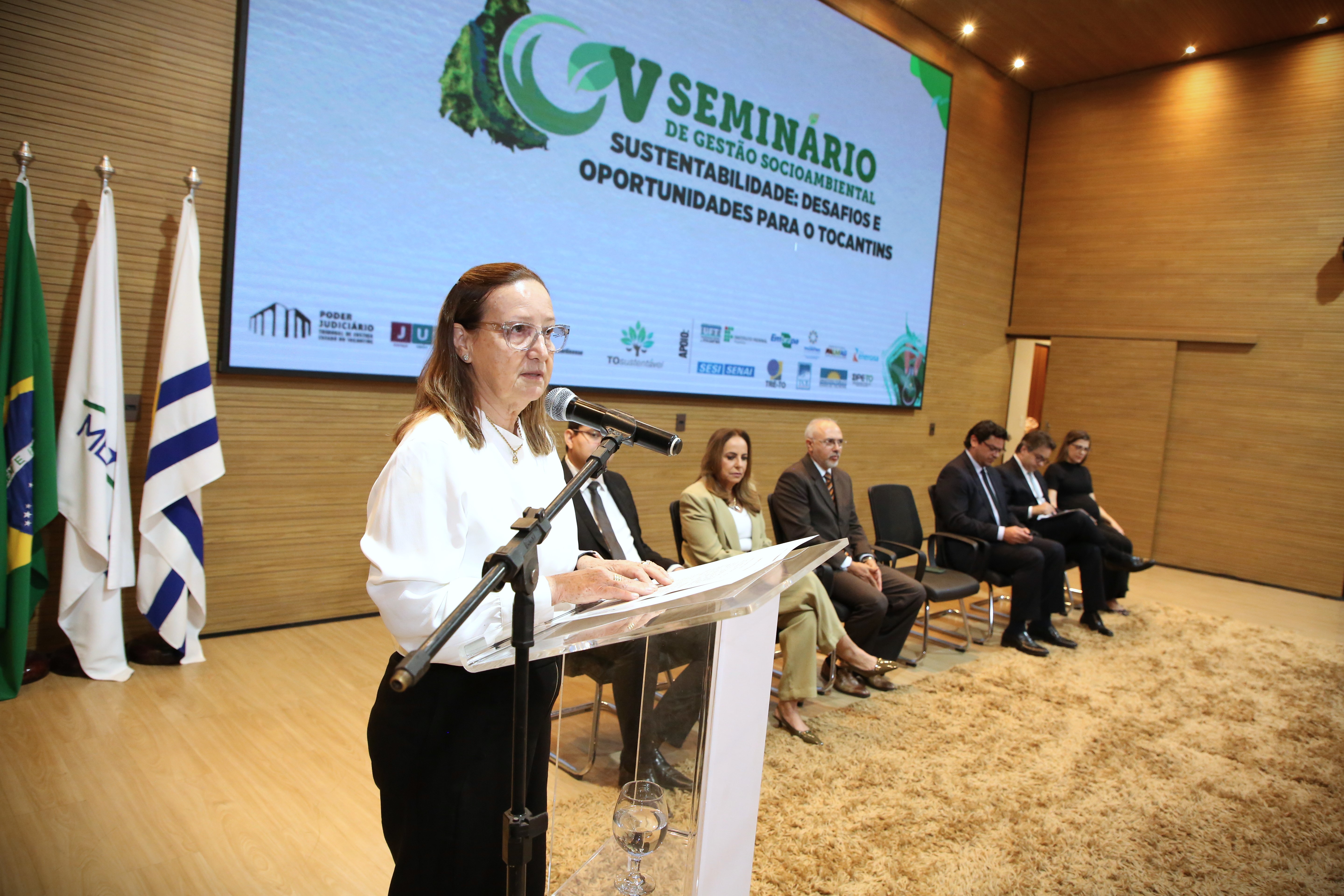 Em seguida, a desembargadora Mayza Vendramini Rosal, presidente do Tribunal de Justiça do Estado do Tocantins (TJTO), enfatizou a responsabilidade coletiva e a liderança pelo exemplo.