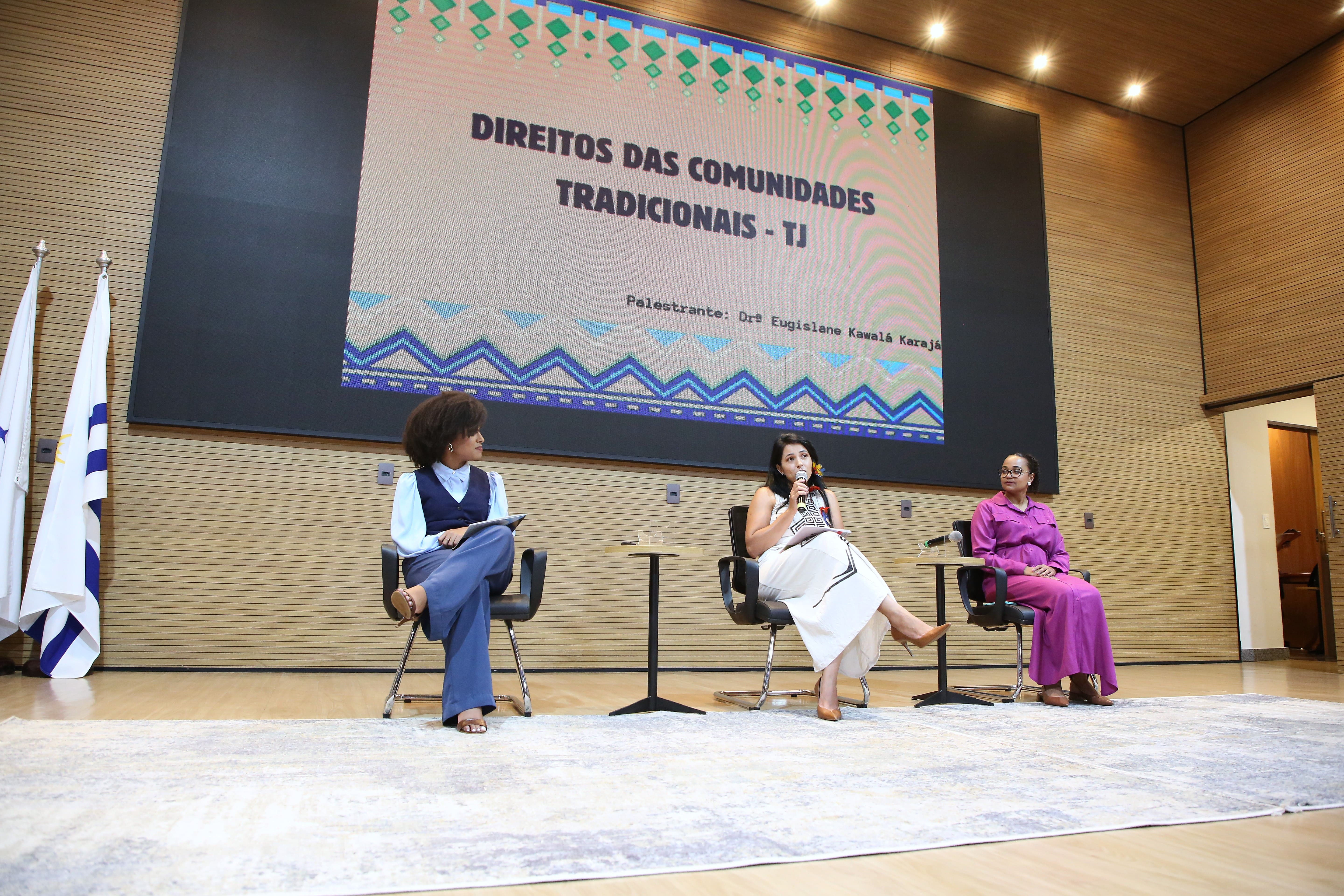 Abrindo a programação da tarde, a palestra “Direitos das Comunidades Tradicionais” trouxe à centralidade do debate a perspectiva indígena sobre território, identidade e direitos fundamentais. A convidada doutora Eugislane Kawala Lima Karajá, servidora da Universidade Federal do Tocantins (UFT) e educadora indígena, compartilhou saberes e experiências a partir do lugar de quem vive e defende, cotidianamente, as múltiplas camadas de pertencimento dos povos originários.