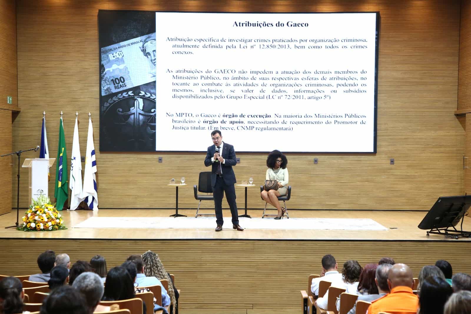 Com mediação da juíza Renata do Nascimento e Silva, diretora do Foro da Comarca de Paraíso do Tocantins, o primeiro painel contou com palestra do promotor de Justiça Tarso Rizo Oliveira Ribeiro, coordenador do Grupo de Atuação Especial de Combate ao Crime Organizado (Gaeco) do MPTO.