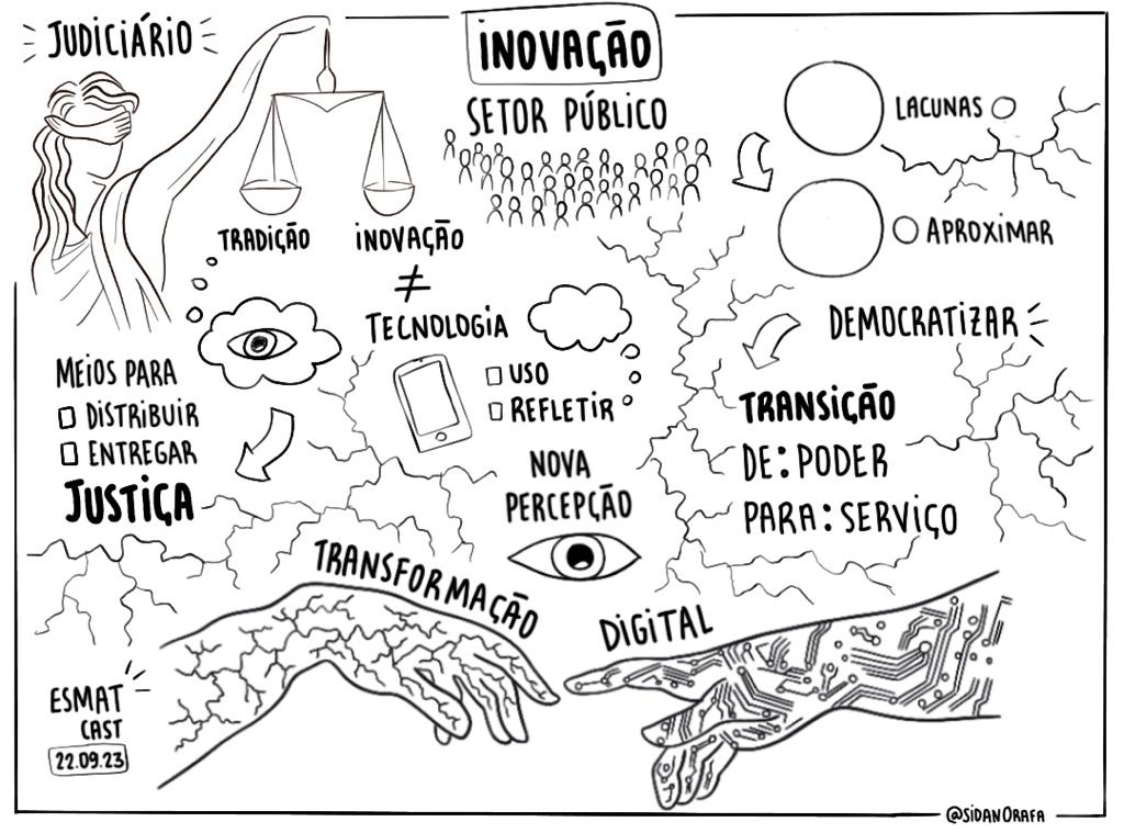 The Superior School of the Judges of the State of Tocantins (ESMAT) has released another episode of the ESMATCast. This time, Director Kézia Reis, from the Social Communication Center of the Court of Justice of the State of Tocantins (CECOM/TJTO), has a super interesting chat about innovation. The guests are André Tamura, founder and executive director of WeGov; Renata Tonial, a public entrepreneur with a degree in Economics; and Sidan Orafa, a graphic facilitator.
