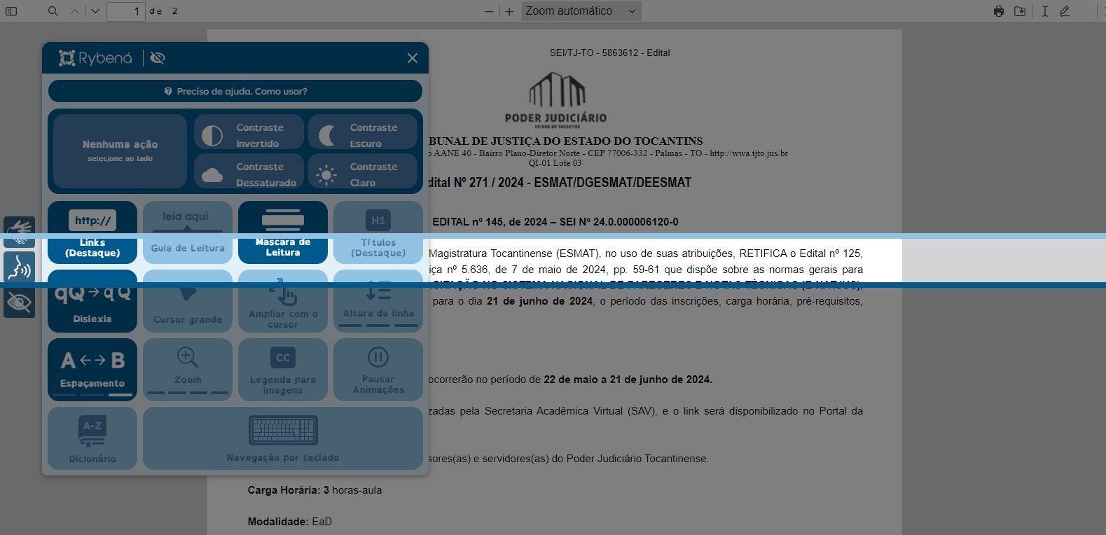 This June, the Superior School of the Judges of the State of Tocantins (Esmat) implemented a new tool to make it easier for people with dyslexia and other reading difficulties to read PDF files. This initiative is in line with the accessibility and inclusion policies regulated by the National Council of Justice (CNJ).