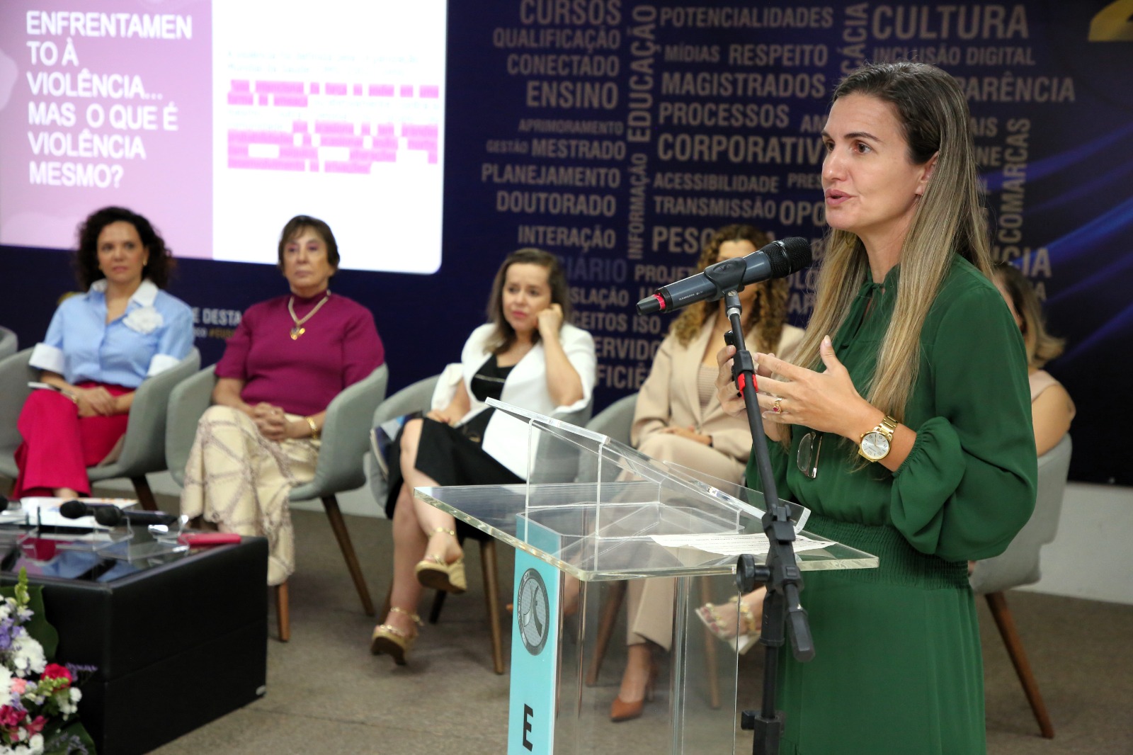The keynote lecture, given by lawyer Priscila Madruga, dealt with the topic on “Confronting Violence Against Women and Institutional Practices: A Necessary Dialogue”. In her presentation, the speaker emphasized the definition of violence, according to the World Health Organization (WHO), as the intentional use of force or power that can cause injury, death, psychological harm or deprivation.