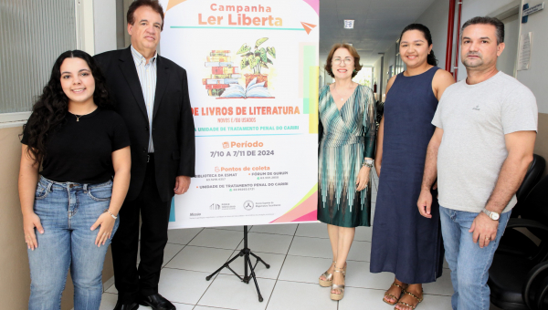 Silvânia Olortegui, librarian of Esmat, led the official launch of the campaign, which was attended by Marcos Rodrigues Porto, Director of the Cariri Prison; Nilson Afonso da Silva, Judge Director; Gerlânia Figueiredo de Oliveira Maia, Secretary of the Judiciary; and Adailton Lima Marinho, Judicial Technician.