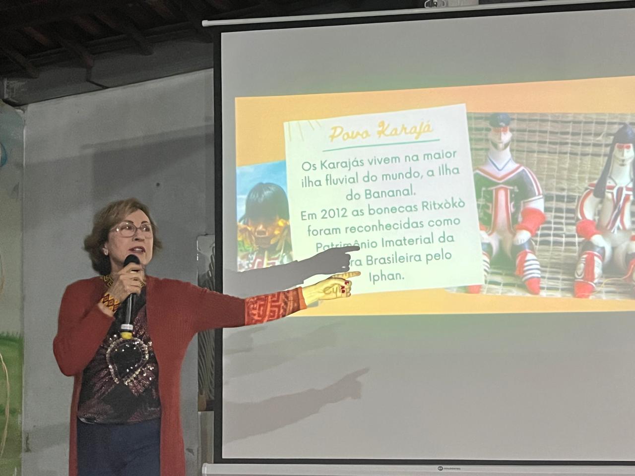 During the event, held at the Zita Gomes CRAS, Silvânia gave the lecture on "Indigenous Peoples of the state of Tocantins", highlighting cultural, social and historical aspects of different ethnicities, with special focus on initiatives to enhance and safeguard traditional knowledge.